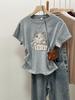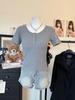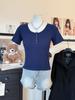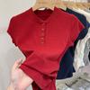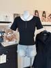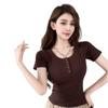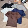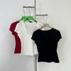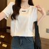 Playera de Cuello Cuadrado, Hombro Derecho, Manga Corta para Mujer, Corte Ajustado Nueva Camiseta de Verano de Media Manga