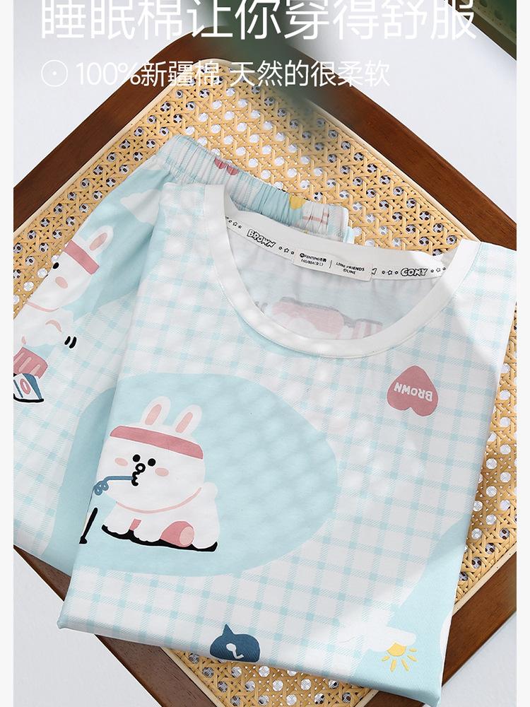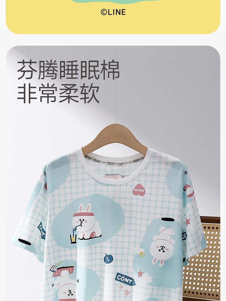 [Algodón para Dormir] Verano Nuevo Pijama para Mujer de Manga Corta y Shorts, Traje Casual de Talla Grande, Dulce Algodón Ropa de Casa para Mujer