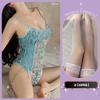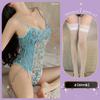 Blue jumpsuit + white body stockings
