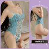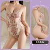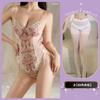 Body Íntimo Suspensório Bordado em Renda Decote V Profundo com Costas Abertas Retrô Floral Francês Alças Sexy e Flores em Tela