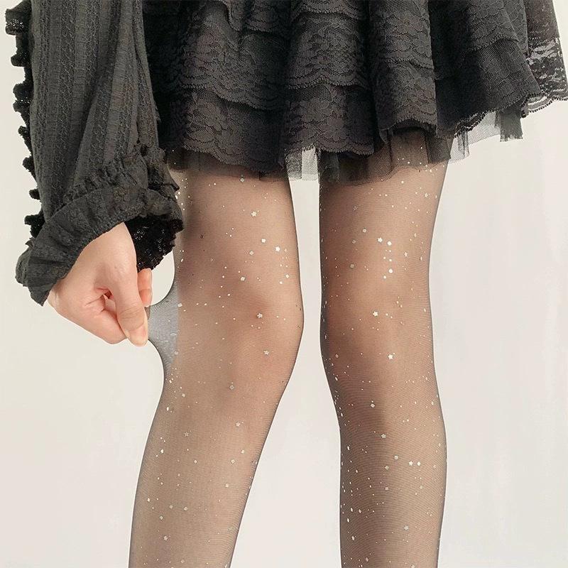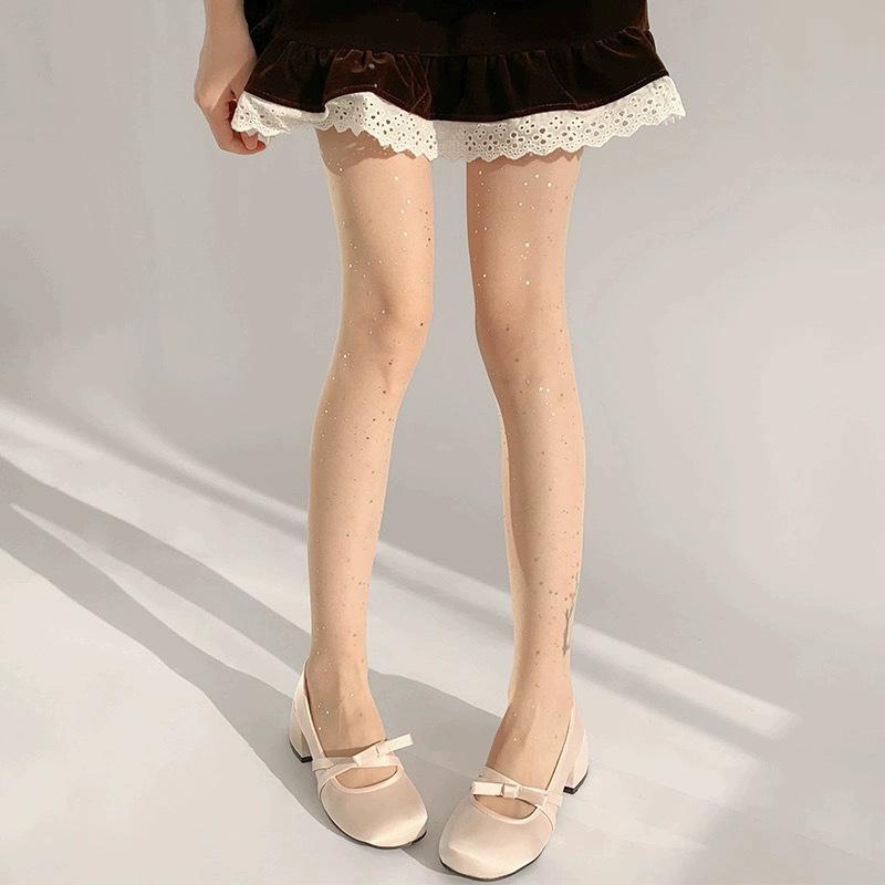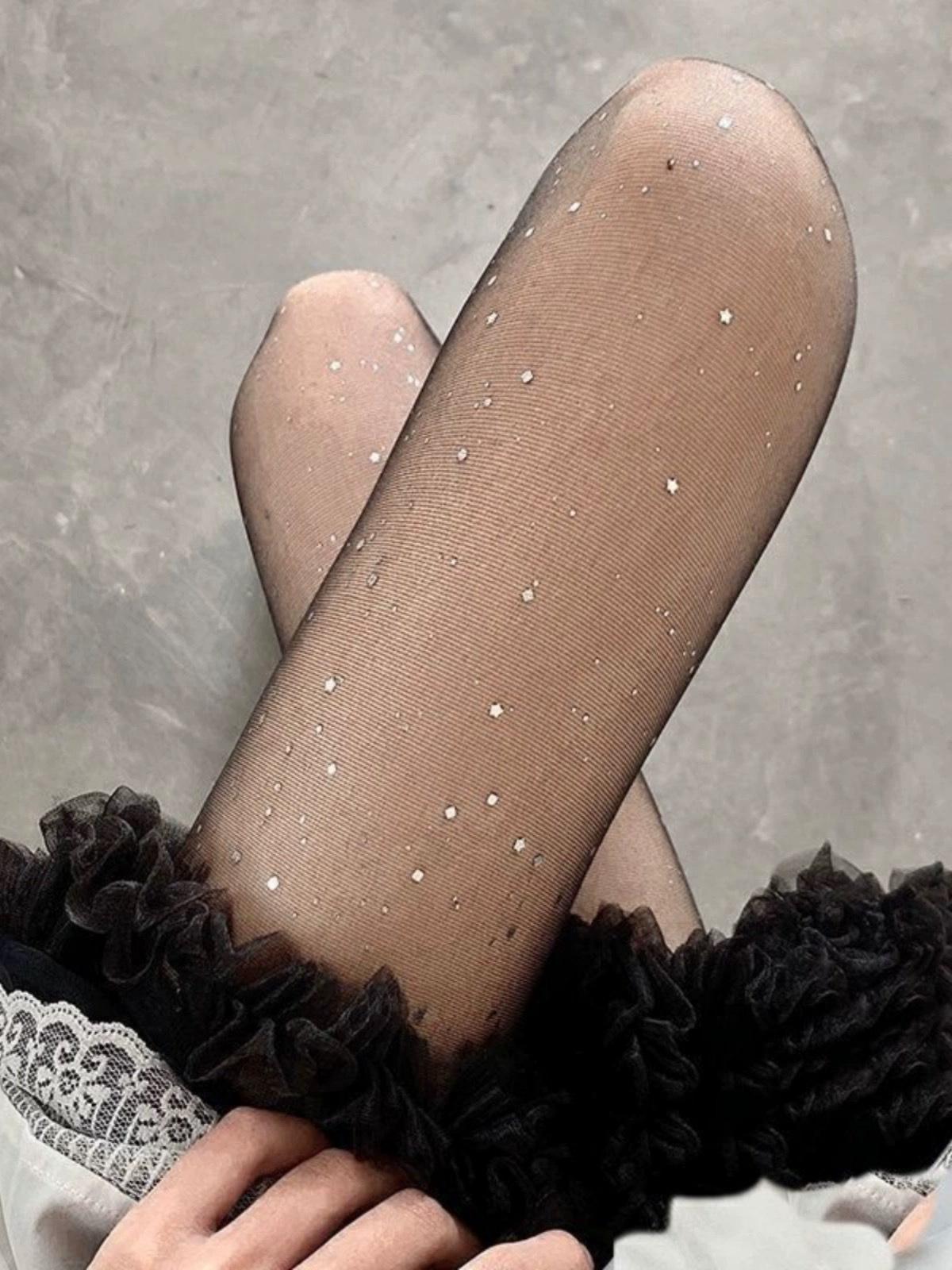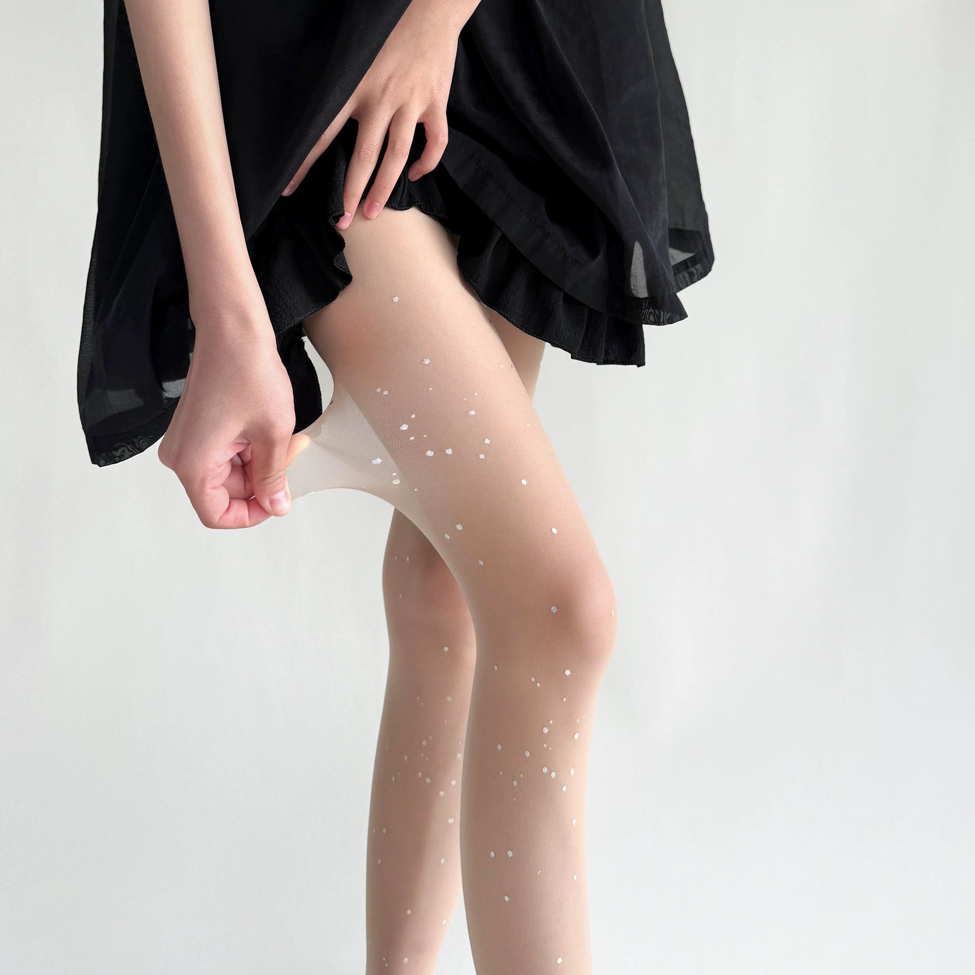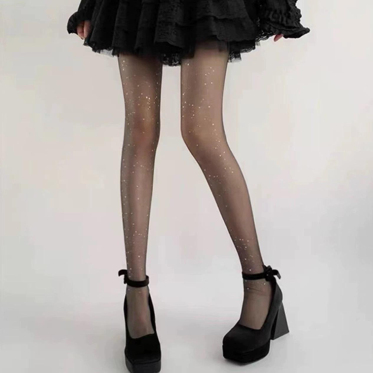 Medias Sexy Nube Rosa para Mujer Medias Finas Brillantes Nacaradas con Lentejuelas Verano Ultrafinas Hermosas Calcetines para Piernas Pantimedias Color Carne