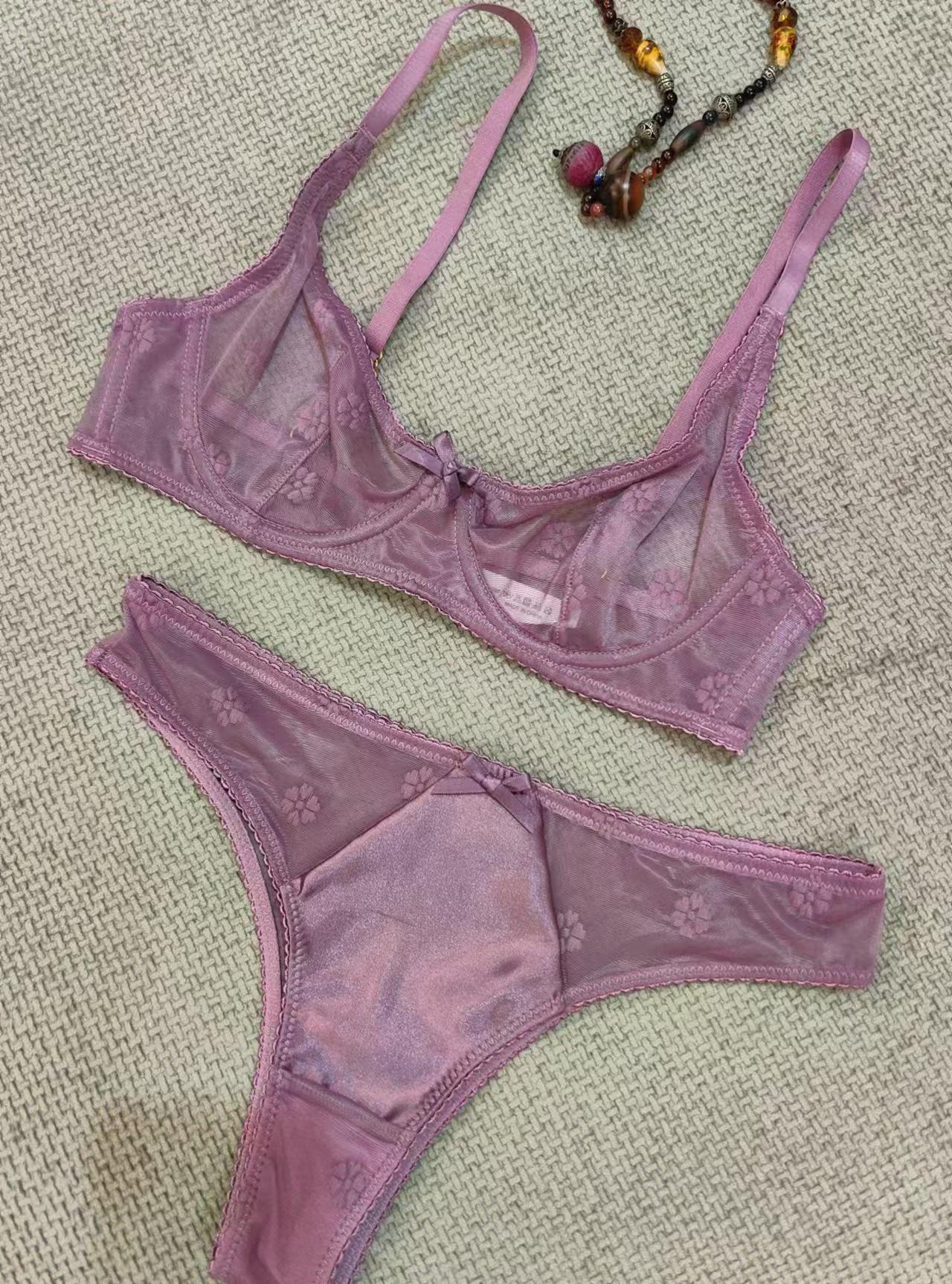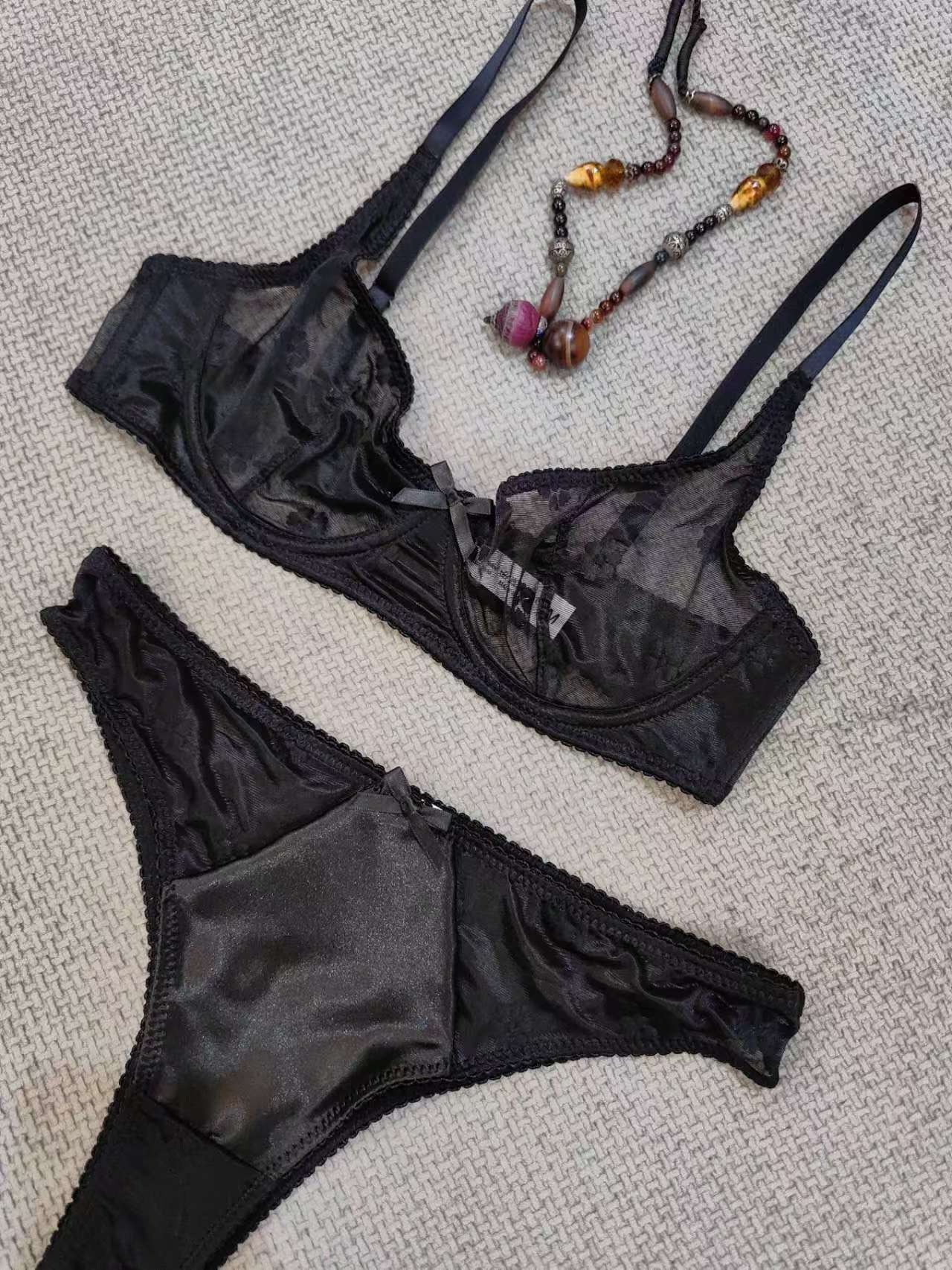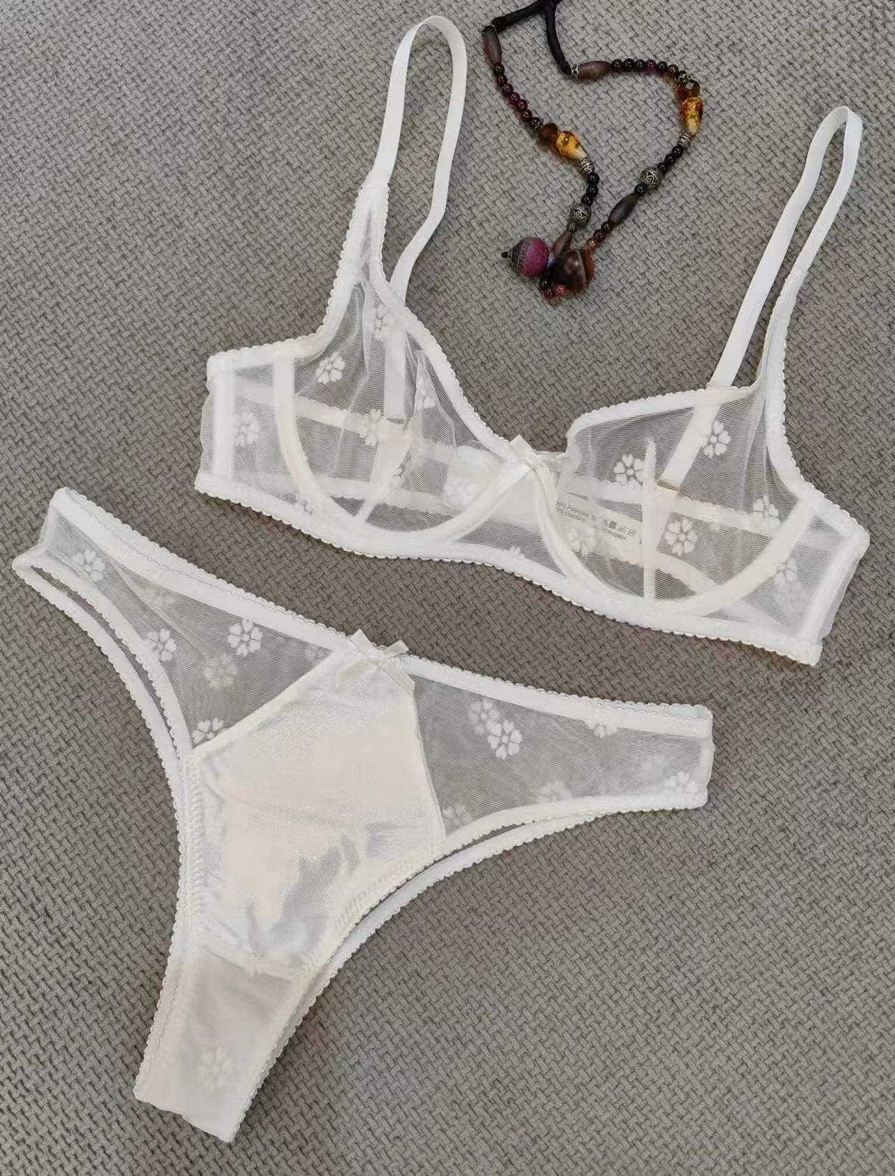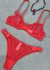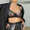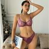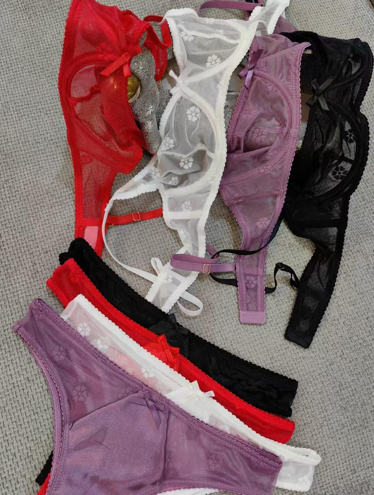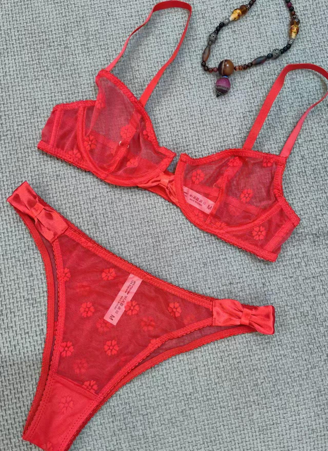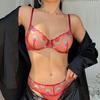 Ropa interior sexy europea y americana transfronteriza encaje malla flocado bordado perspectiva divertida pecho grande traje de brasier pequeño rojo
