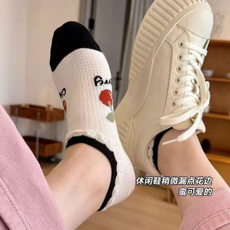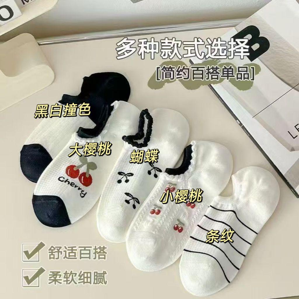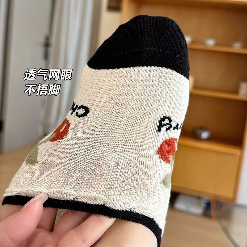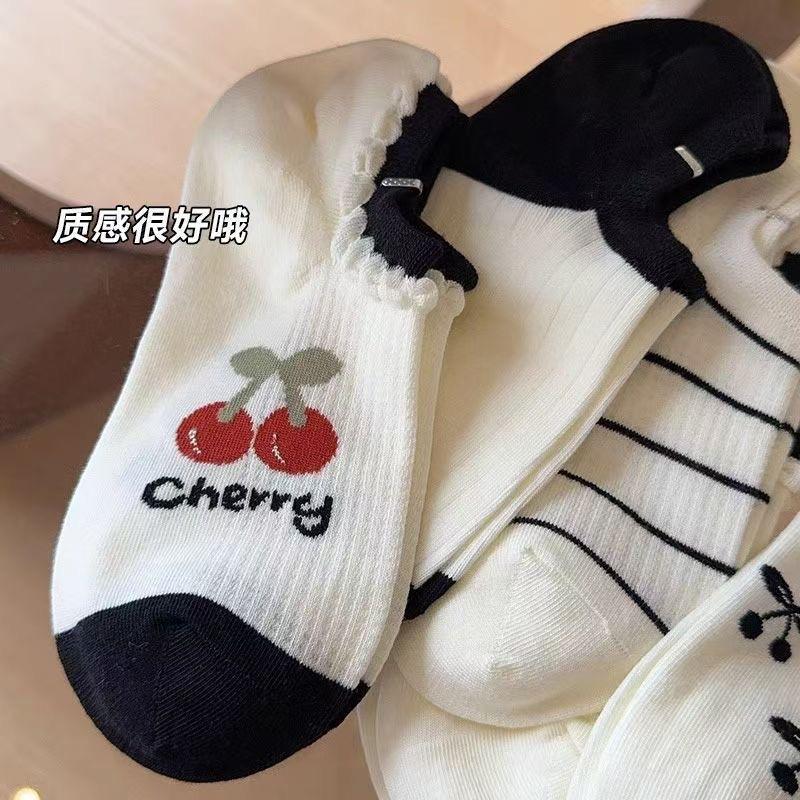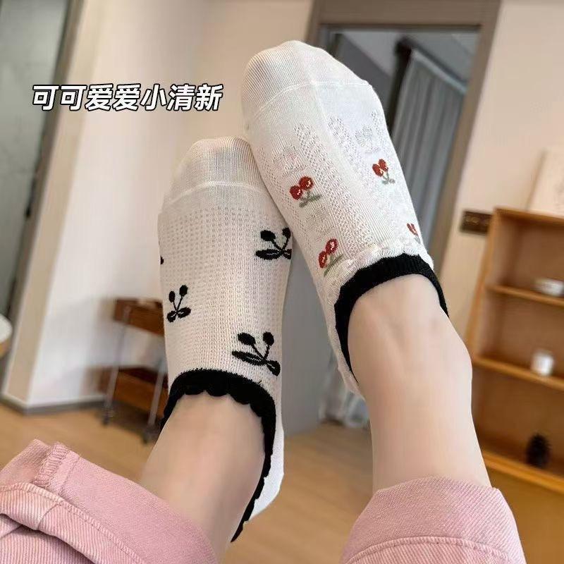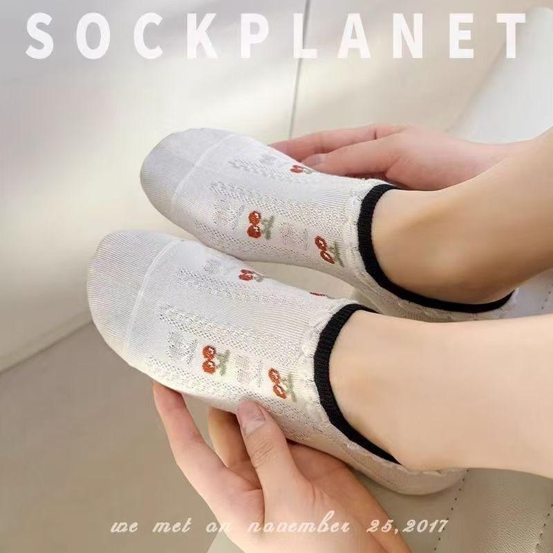 Primavera y Verano Lindo Delgada Malla Transpirable de Cerezas Calcetines Cortos Absorbentes de Sudor de Verano Calcetines Bajos Calcetines Invisibles Tipo Barco