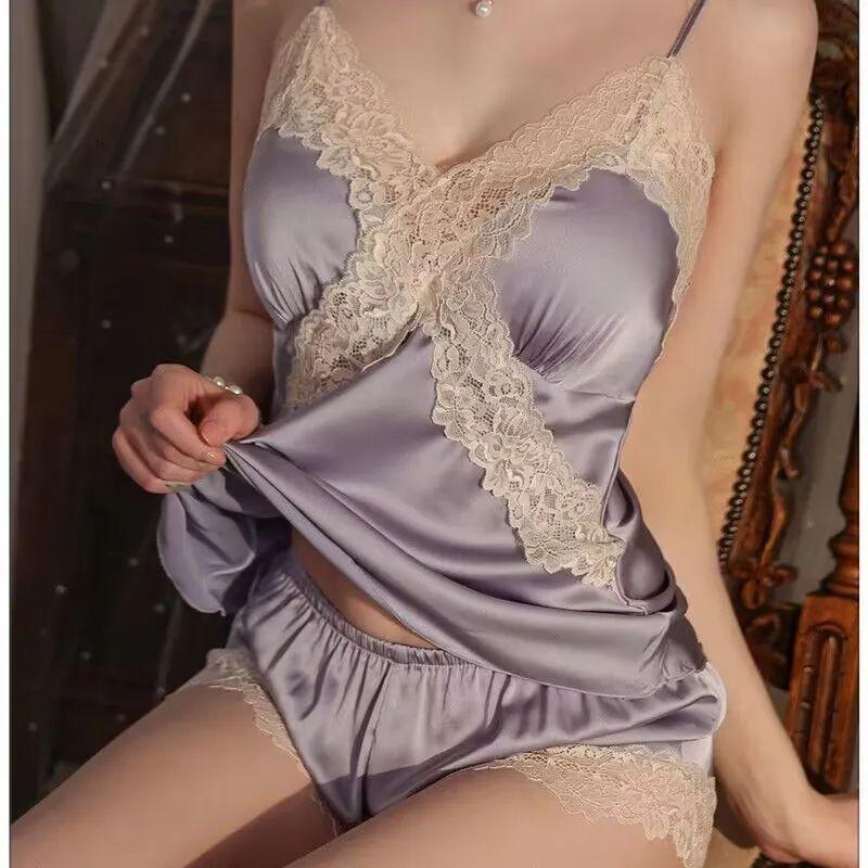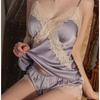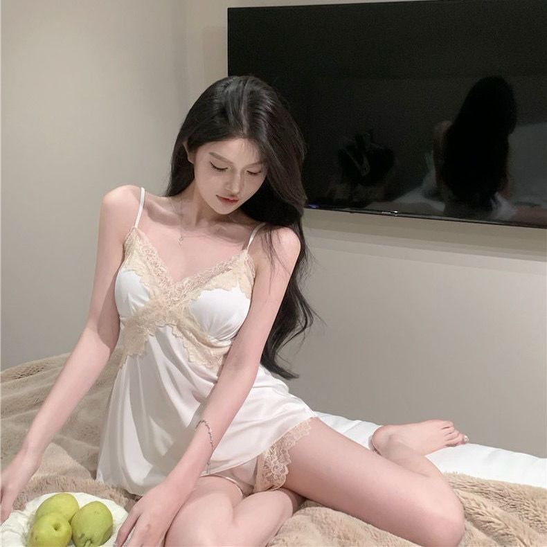 Gran Venta Pijamas Sexy para Mujer Verano Seda de Hielo Estilo Lujuria Pura Encaje Camisón de Tirantes Estilo Verano Estilo con Almohadillas para Pechos Pequeños