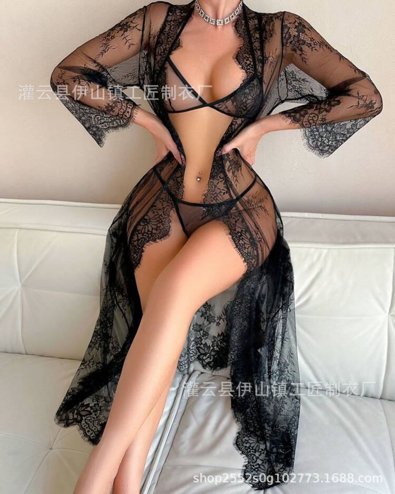 Comercio Exterior Transfronterizo Nueva Lencería Sexy Cárdigan Sexy Camisón de Encaje Transparente Traje Delgado Pijama Sexy para Mujer Verano