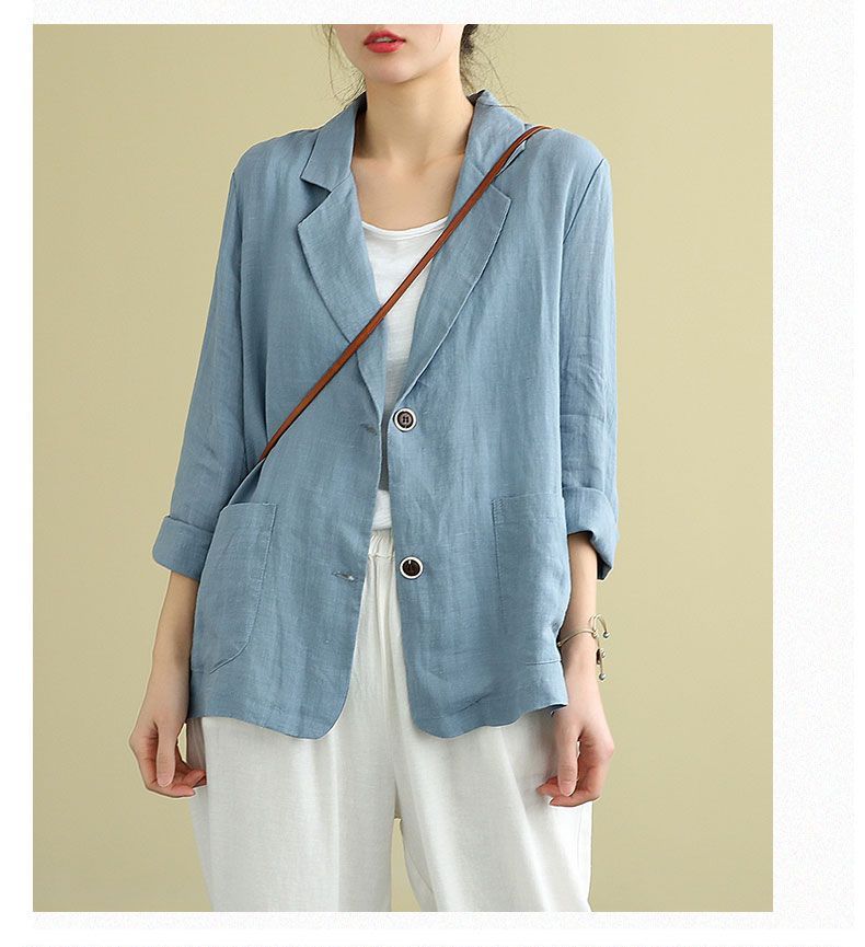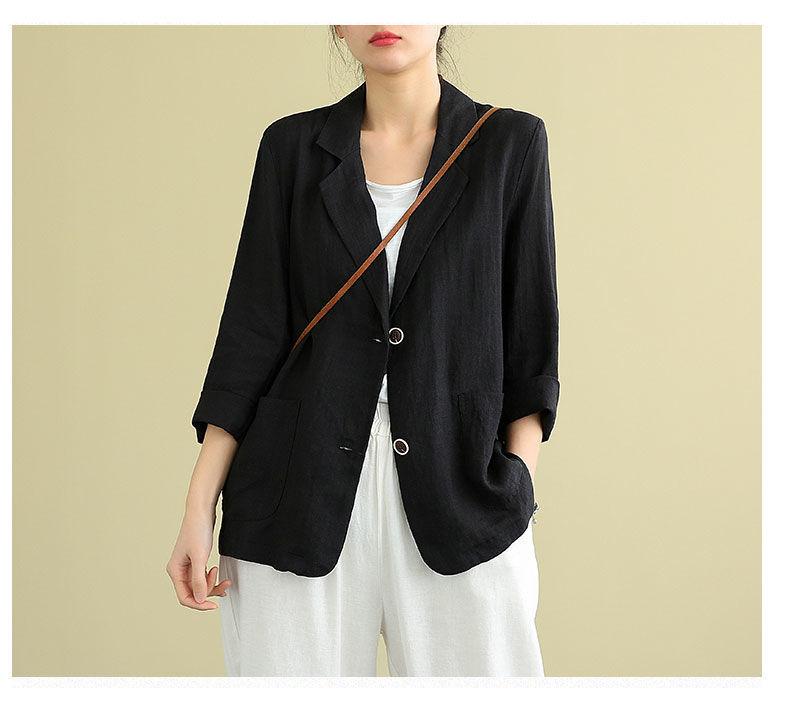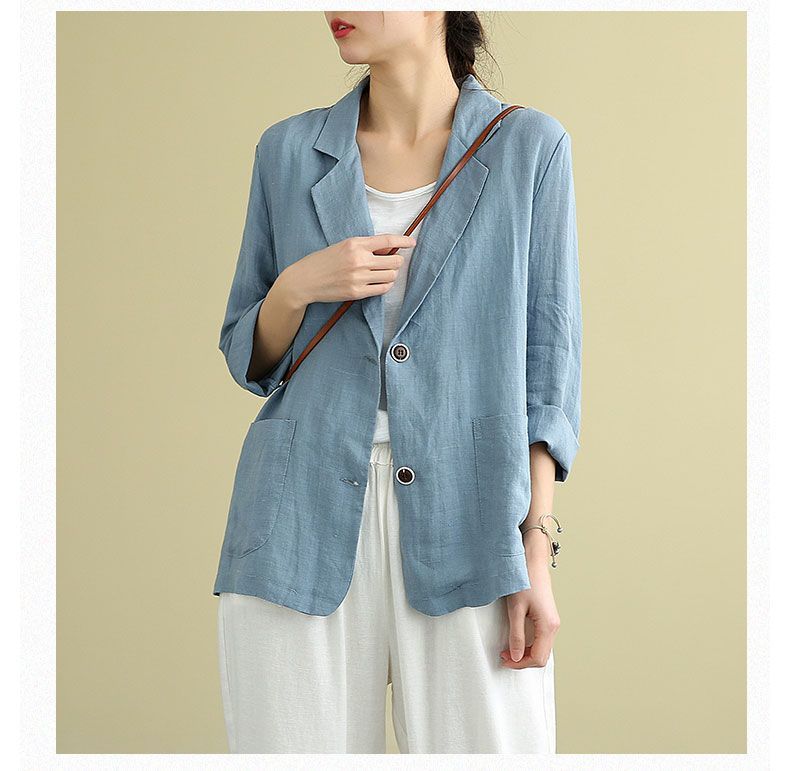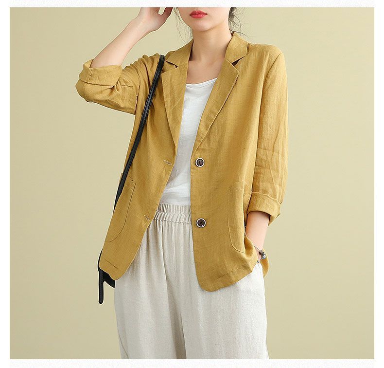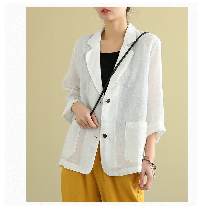 Traje pequeño de algodón y lino para exteriores 2023 Primavera y Verano Nuevo Suelto Literario y Versátil de Manga Larga Casual Elegante Ropa de Protección Solar para Mujer
