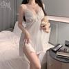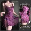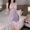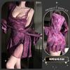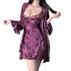 Purple flocked suspender nightgown, Strappy nightgown + robe + belt, Robe + belt