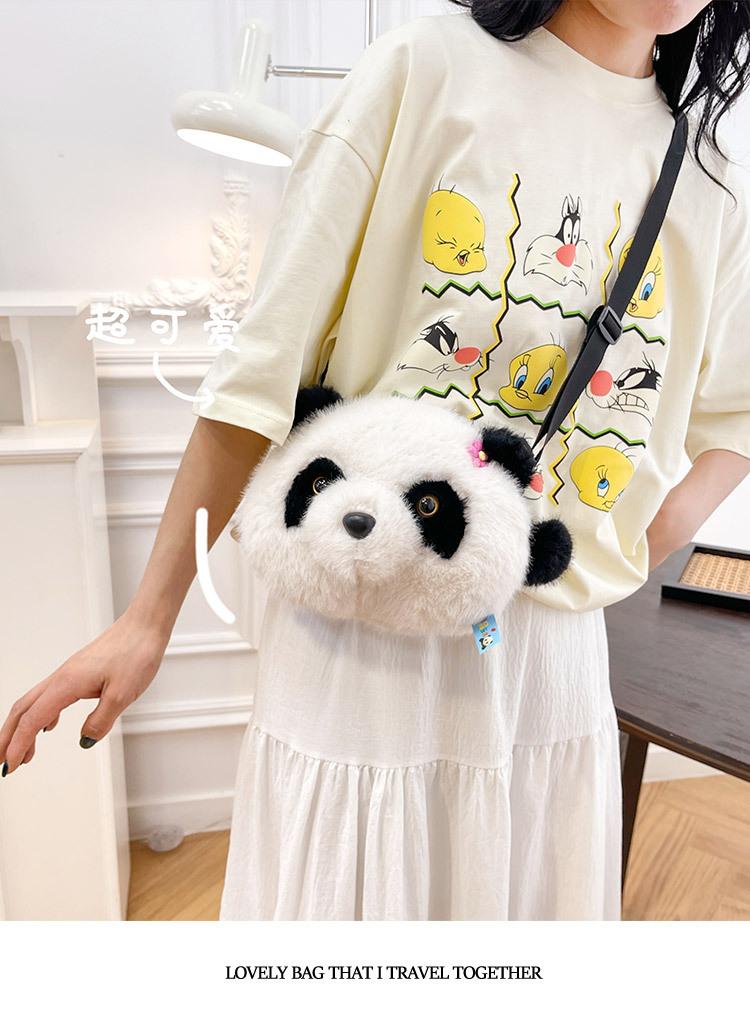 Bolsa de Felpa de Panda para Mujer 2025 Nueva Bolsa de Hombro Cruzada Mochila de Muñeco Muñeco Bolsa Linda de Dibujos Animados