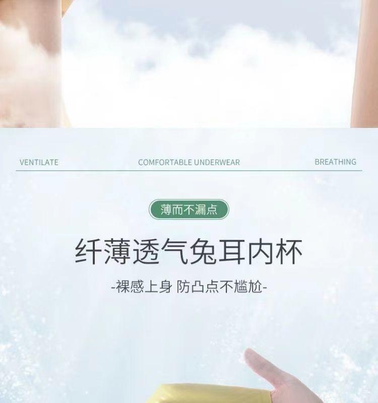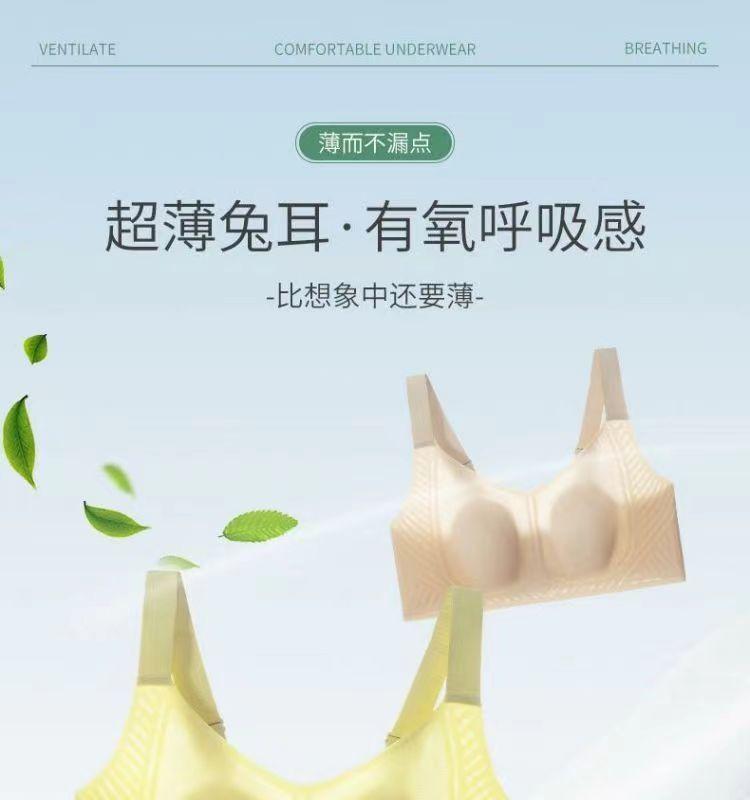Sujetador fino de verano con orejas de conejo, ultrafino, sin costuras, con soporte suave, pecho grande, ropa interior pequeña, transpirable y fruncido