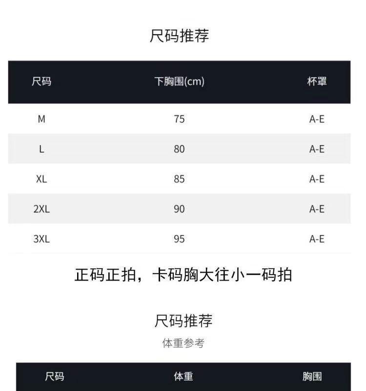 M(34/75BCDE), L(36/80BCDE), XL(38/85BCDE), XXL(40/90BCDE), XXXL(42/95BCDE), XXXXL(44/100BCDE)