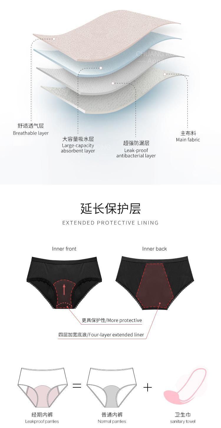 Pantalones Menstruales de Exportación Personalizados, Pantalones Menstruales de Cuatro Capas de Cintura Baja Anti-Fugas Laterales para Adolescentes, Traje de Baño Especial para el Periodo Menstrual