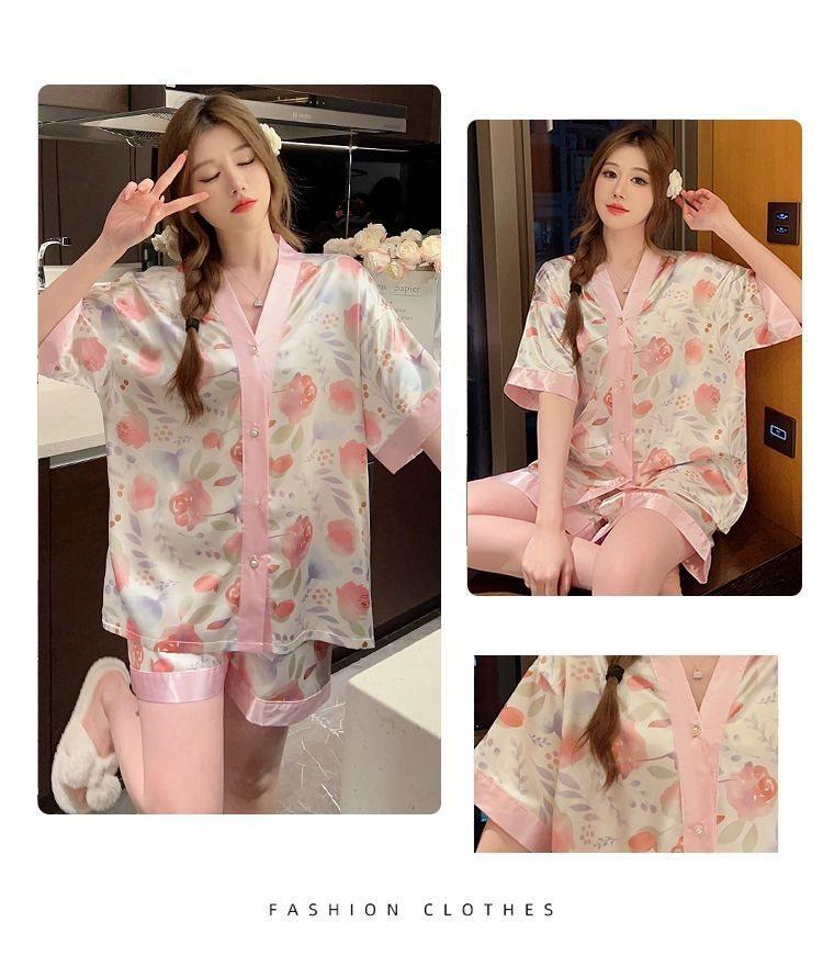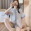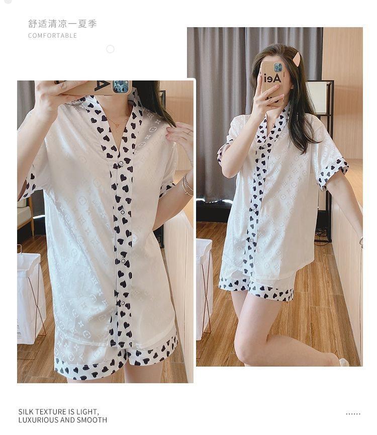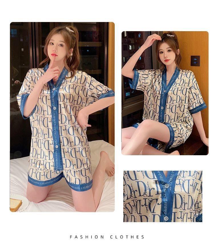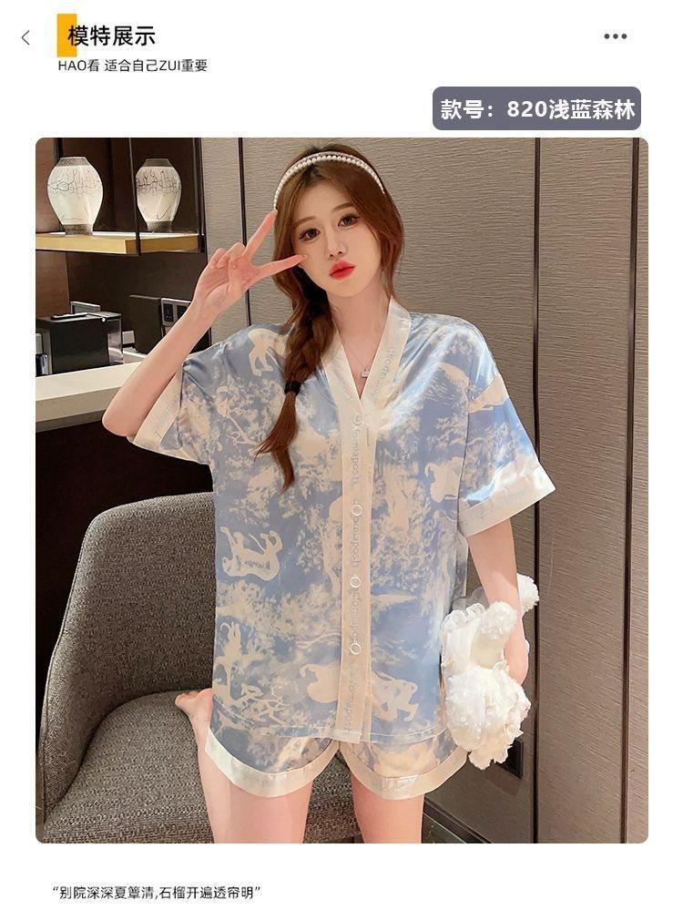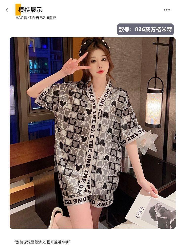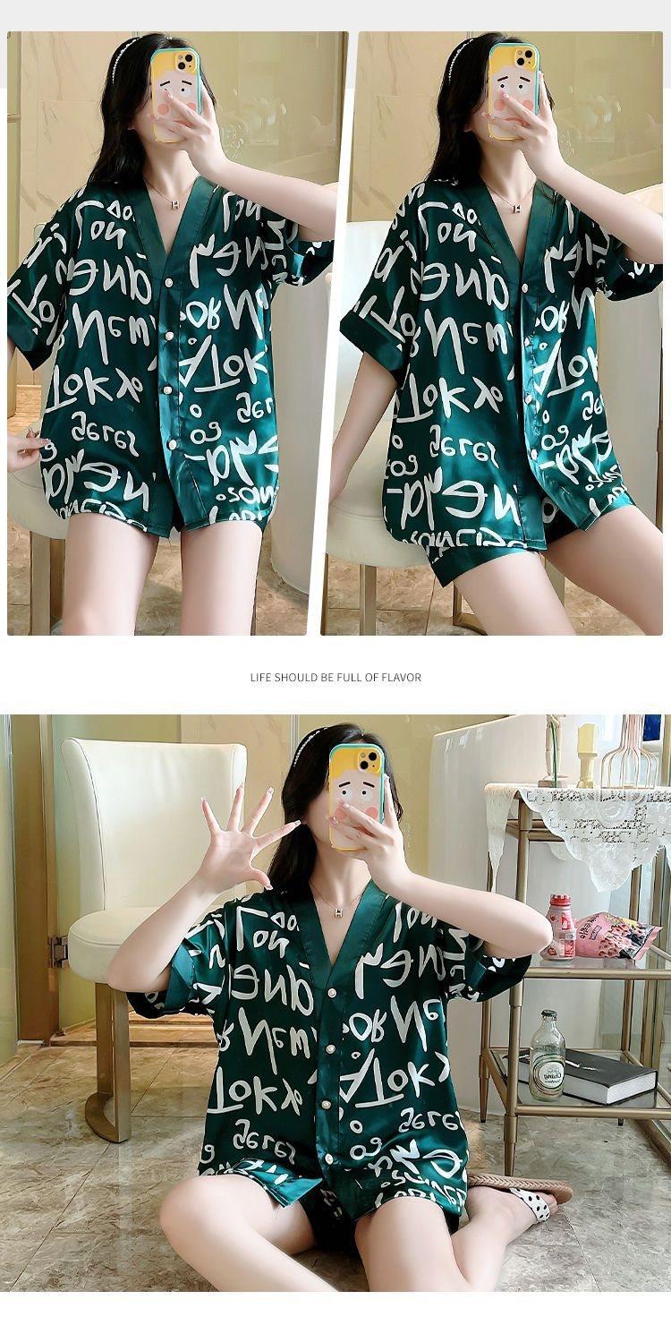 Pijama para Mujer Verano Seda de Hielo Manga Corta Estilo Coreano Delgada Estudiante Linda Sexy Verano Traje de Dos Piezas Dibujos Animados Ropa para el Hogar