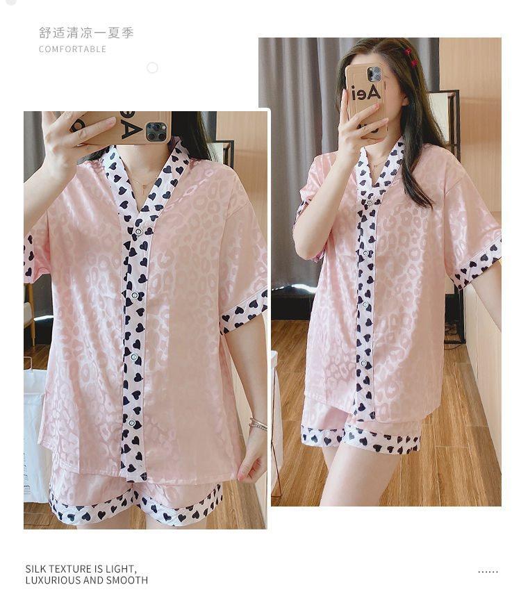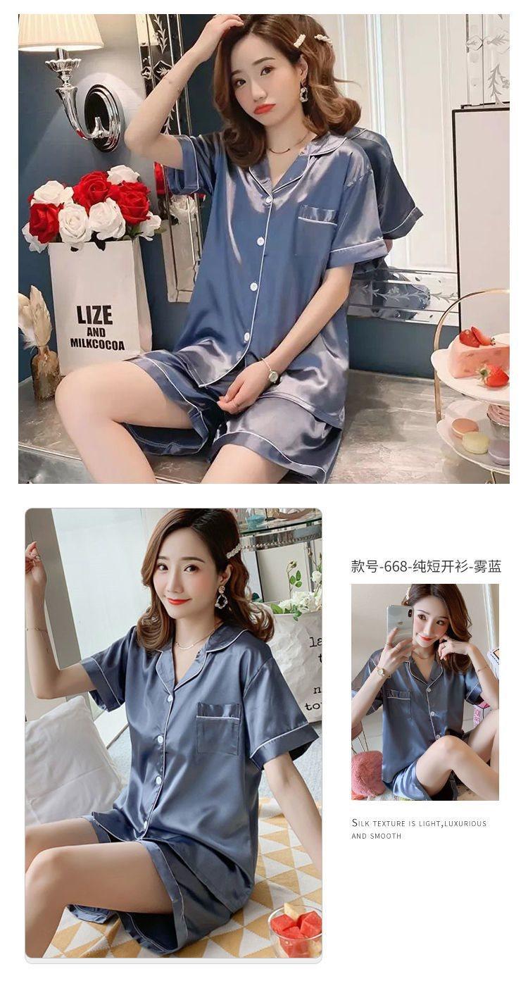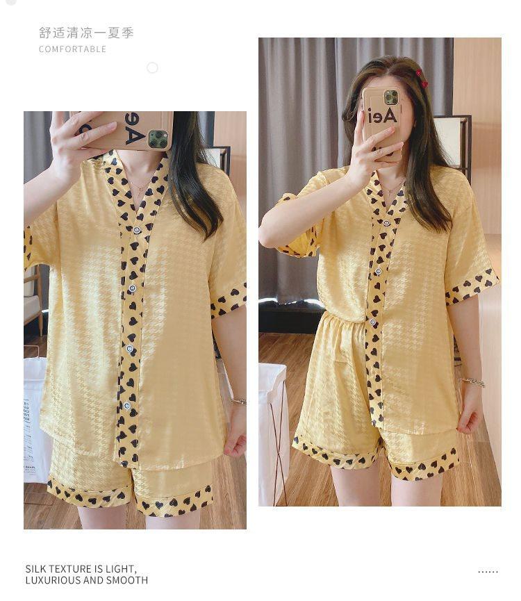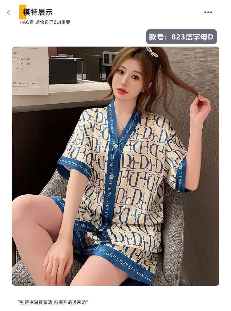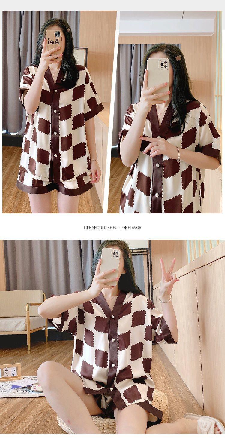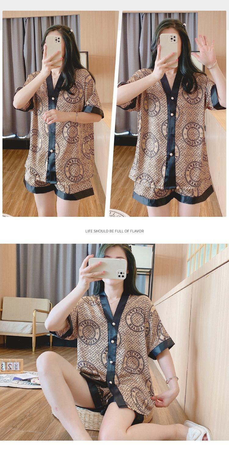 Pijama para Mujer Verano Seda de Hielo Manga Corta Estilo Coreano Delgada Estudiante Linda Sexy Verano Traje de Dos Piezas Dibujos Animados Ropa para el Hogar