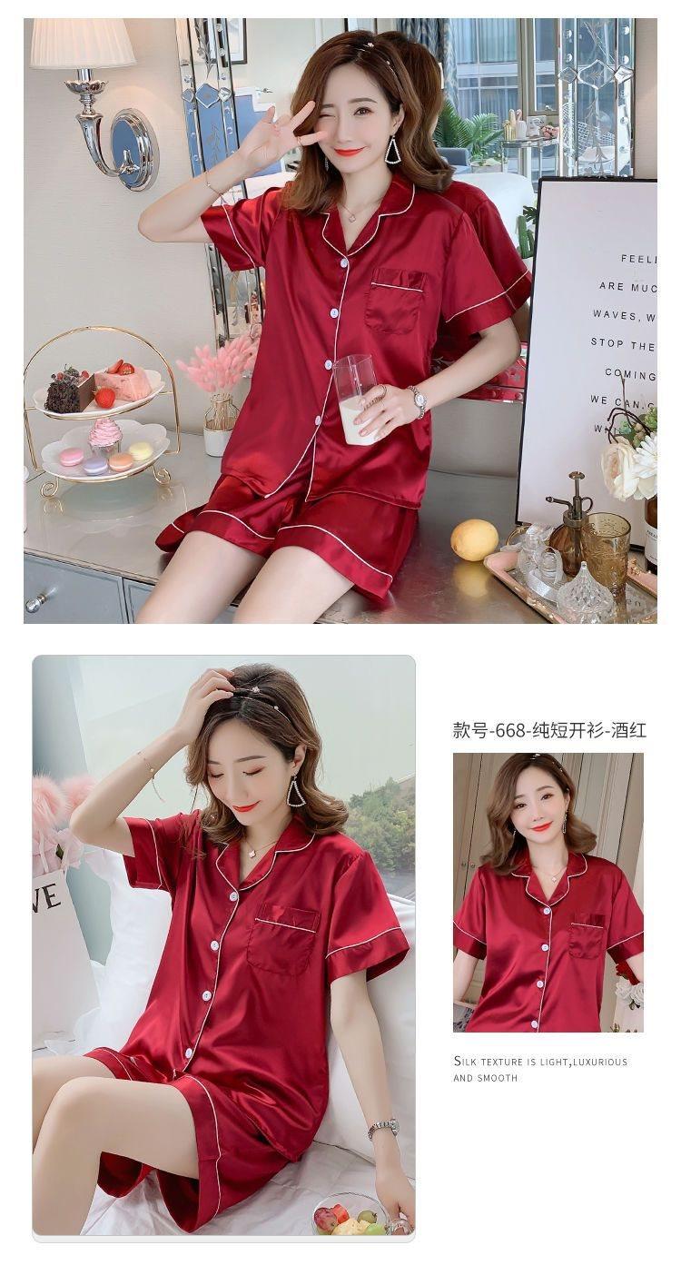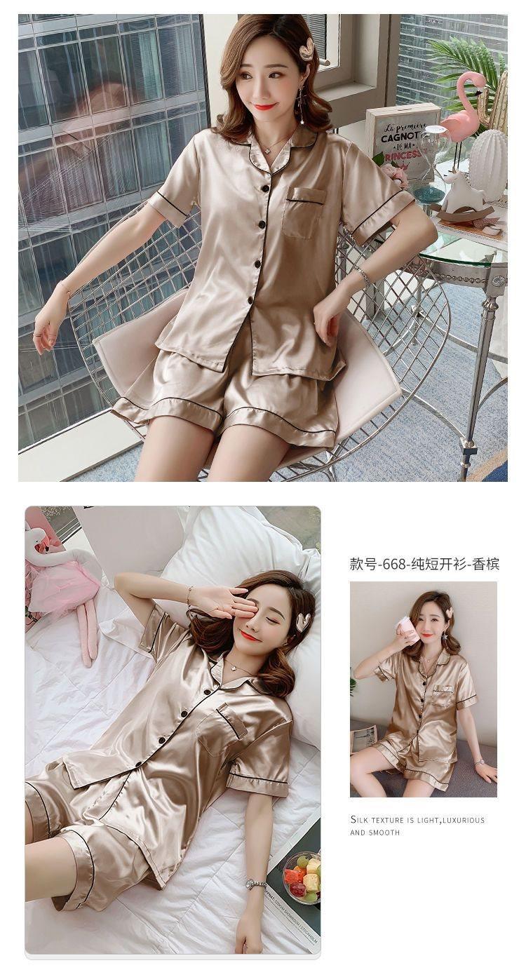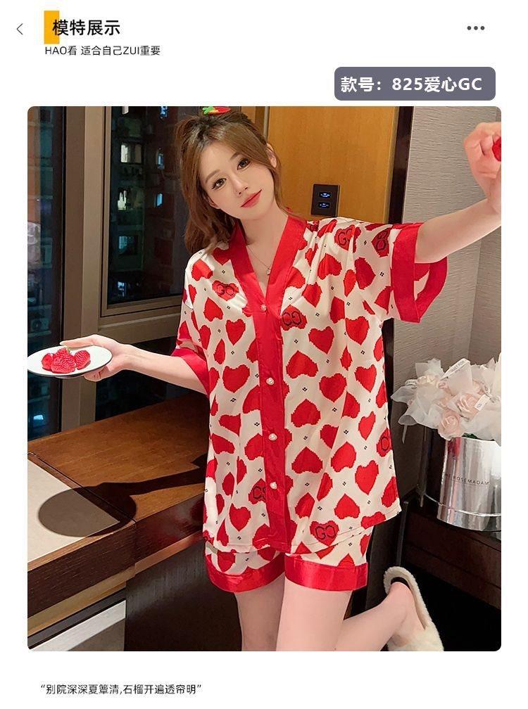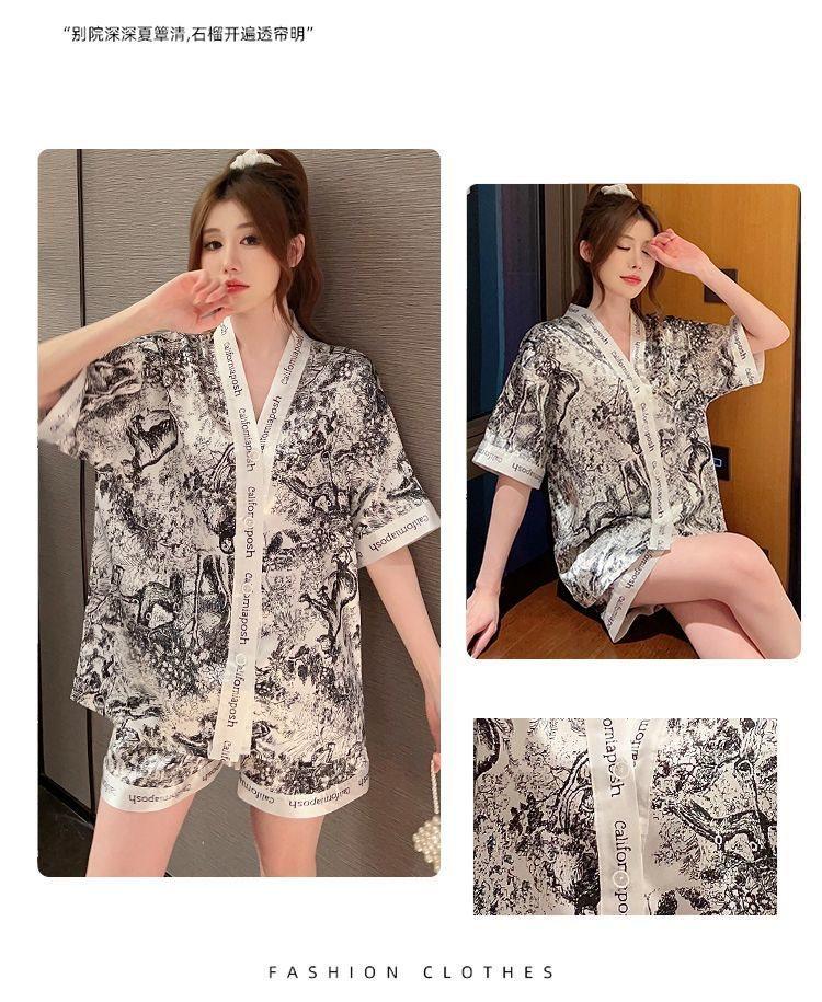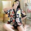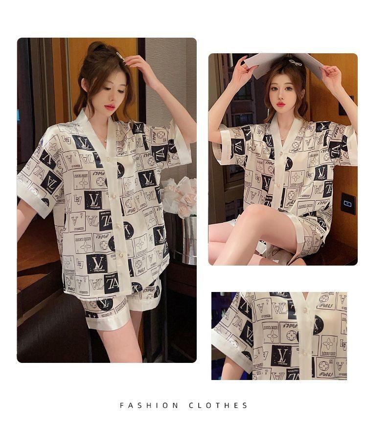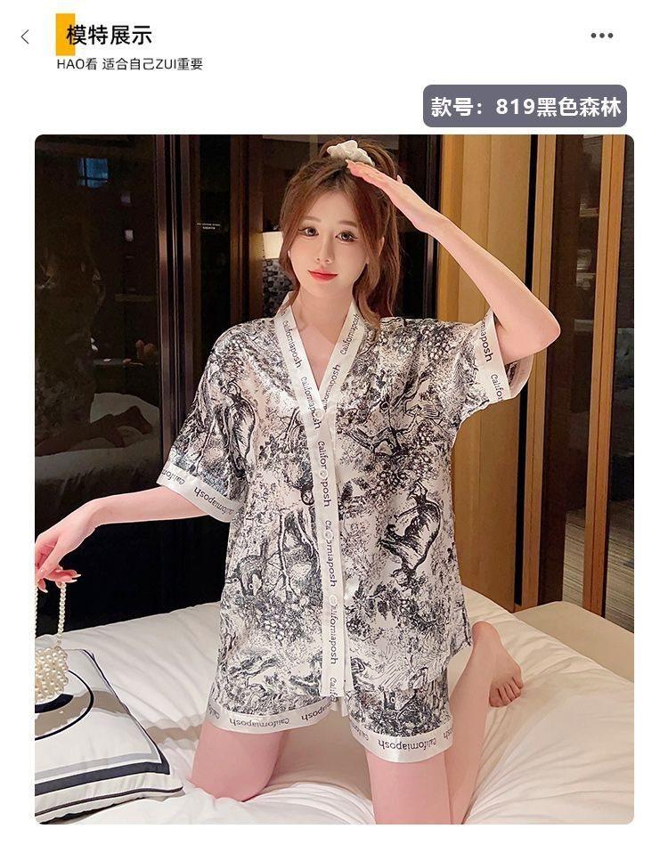 Pijama para Mujer Verano Seda de Hielo Manga Corta Estilo Coreano Delgada Estudiante Linda Sexy Verano Traje de Dos Piezas Dibujos Animados Ropa para el Hogar