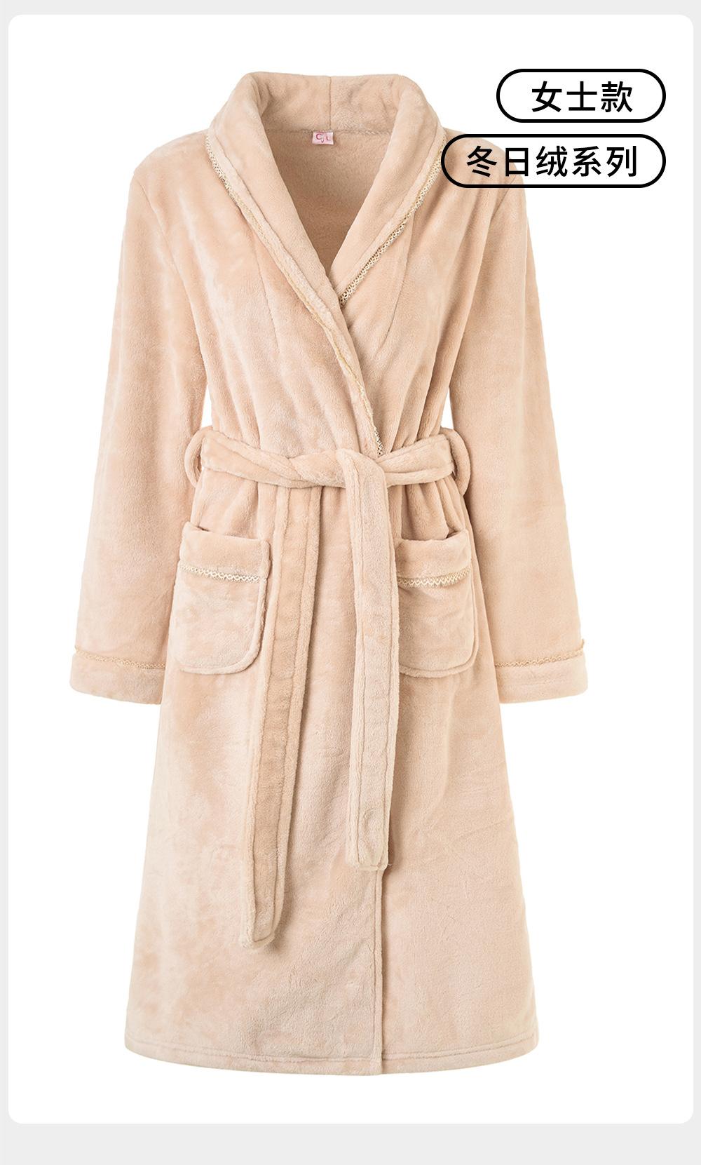 Bonito Camisón para Mujer Invierno Grueso Largo Cálido Bata de Felpa Coral Otoño e Invierno Franela Bata Sexy Pijama
