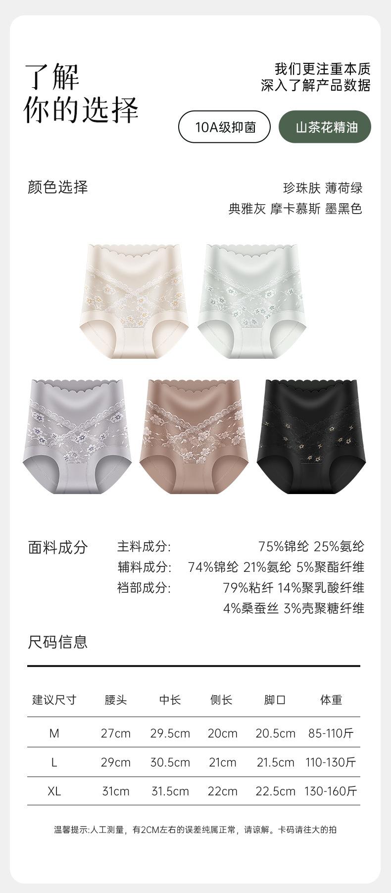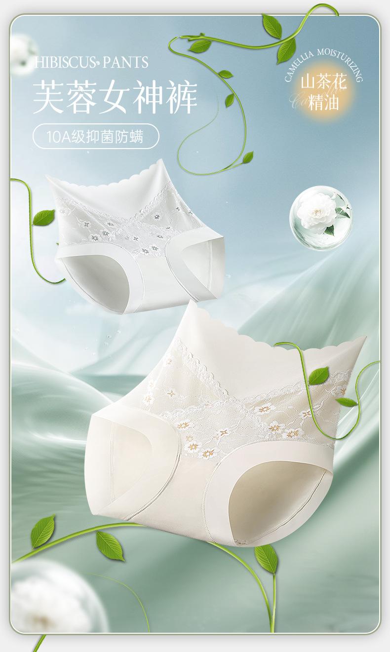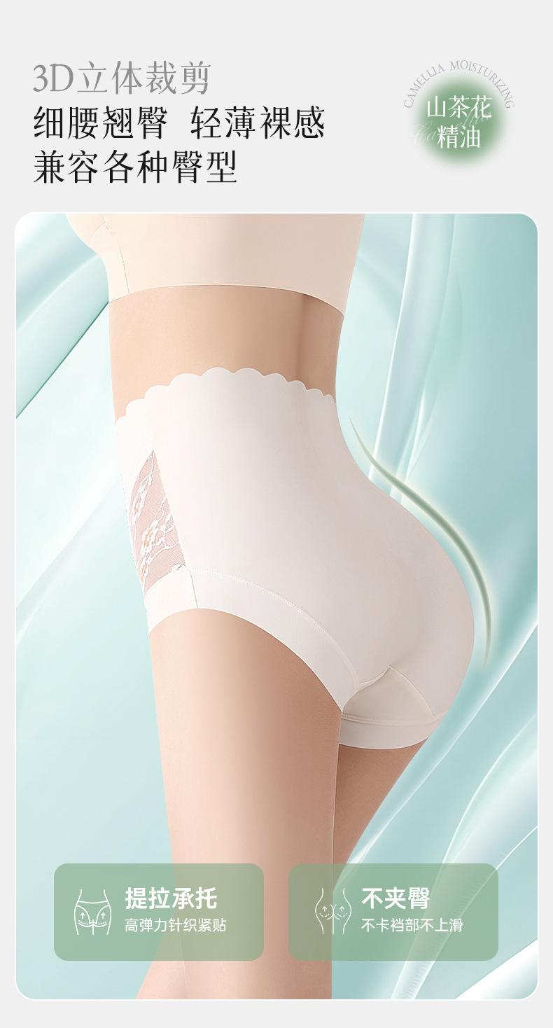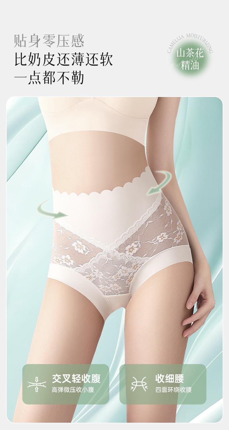 Pantalones Seamless de Cintura Alta con Control de Abdomen Encaje Camelia Braguitas Sexy para Mujer Tallas Grandes Calzoncillos Levanta Glúteos 10A Antibacteriano