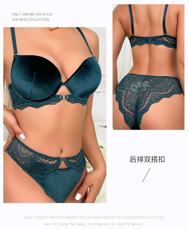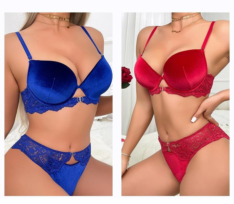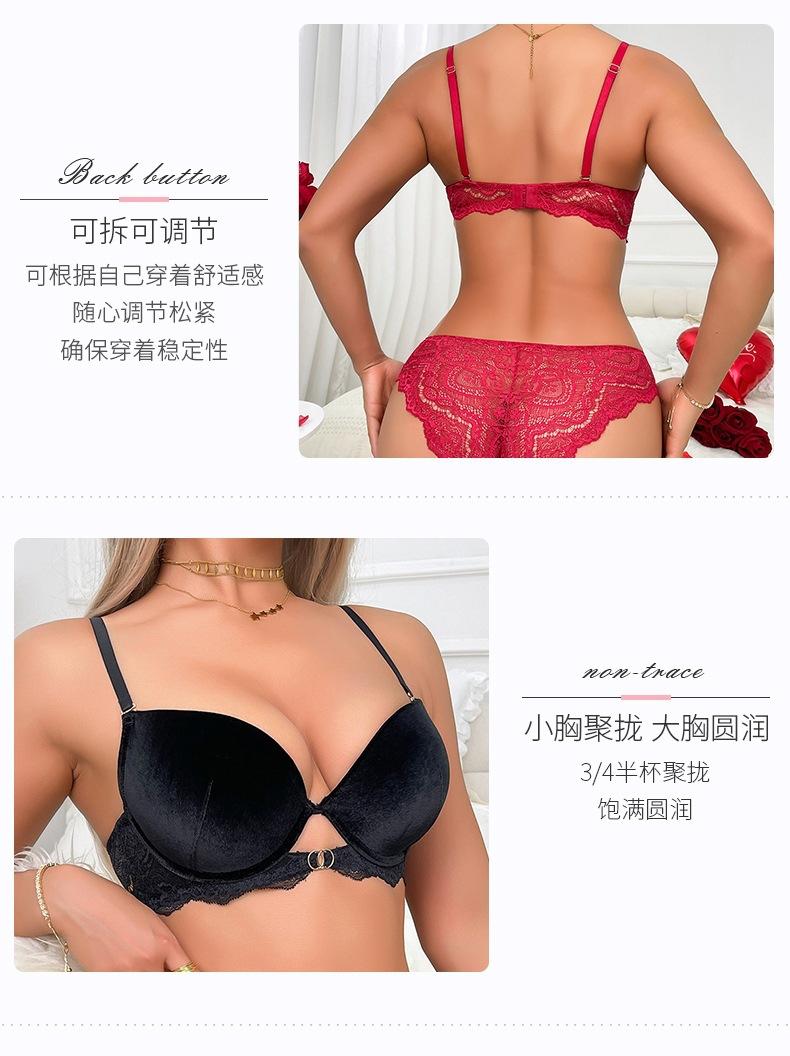 Terciopelo Pequeño Pecho Push-up Sujetador para Mujer Sujetador de Acero Anticaída Paramilis Sexy Rojo Traje de Sujetador Benmingnian