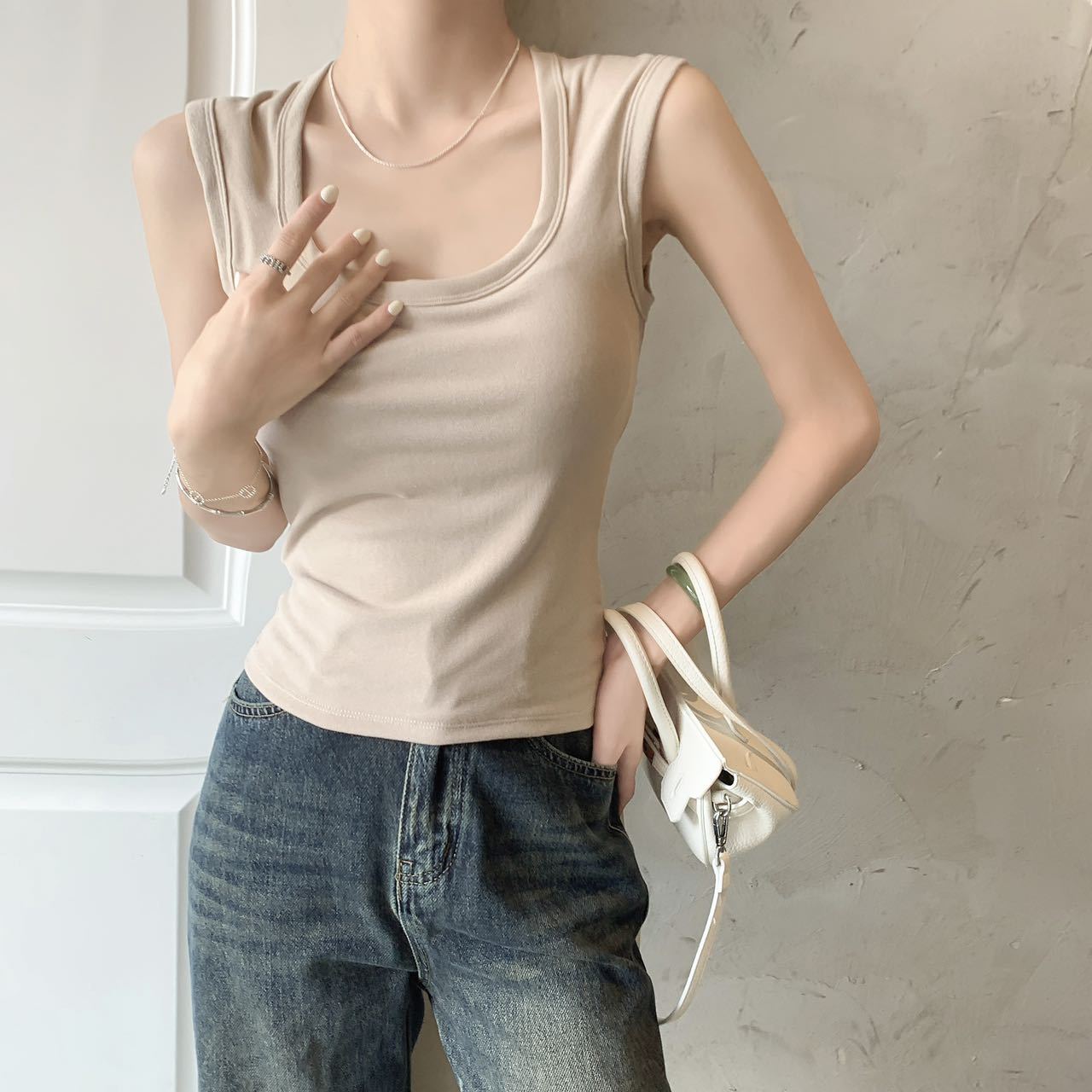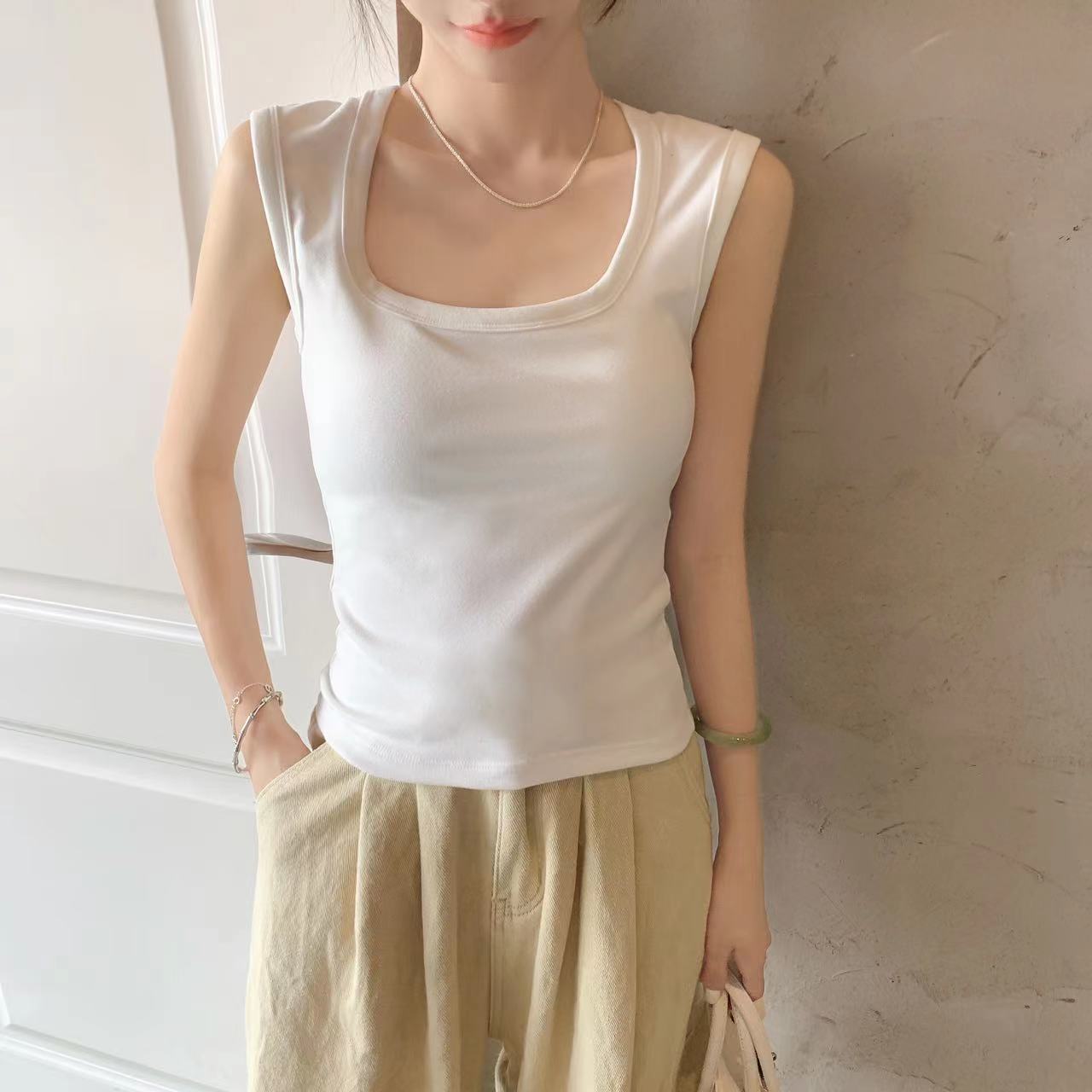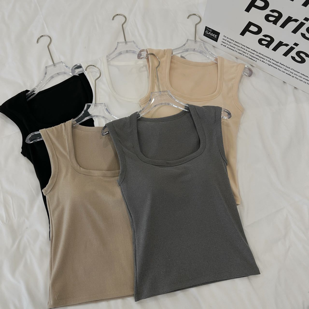 Otoño e Invierno nuevo estilo cálido hilo de terciopelo cómodo terciopelo cuello cuadrado color sólido chaleco ropa interior para mujer con almohadilla en el pecho tirantes top básico