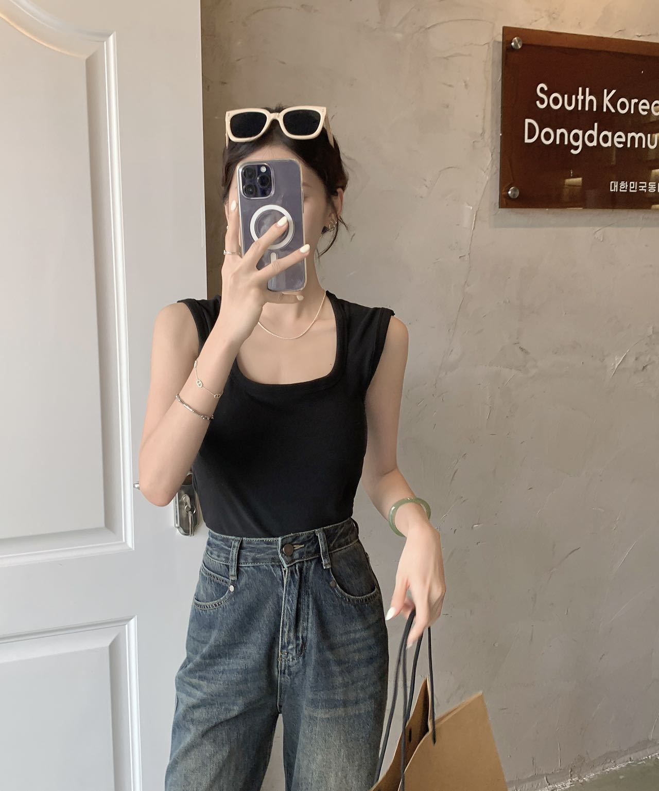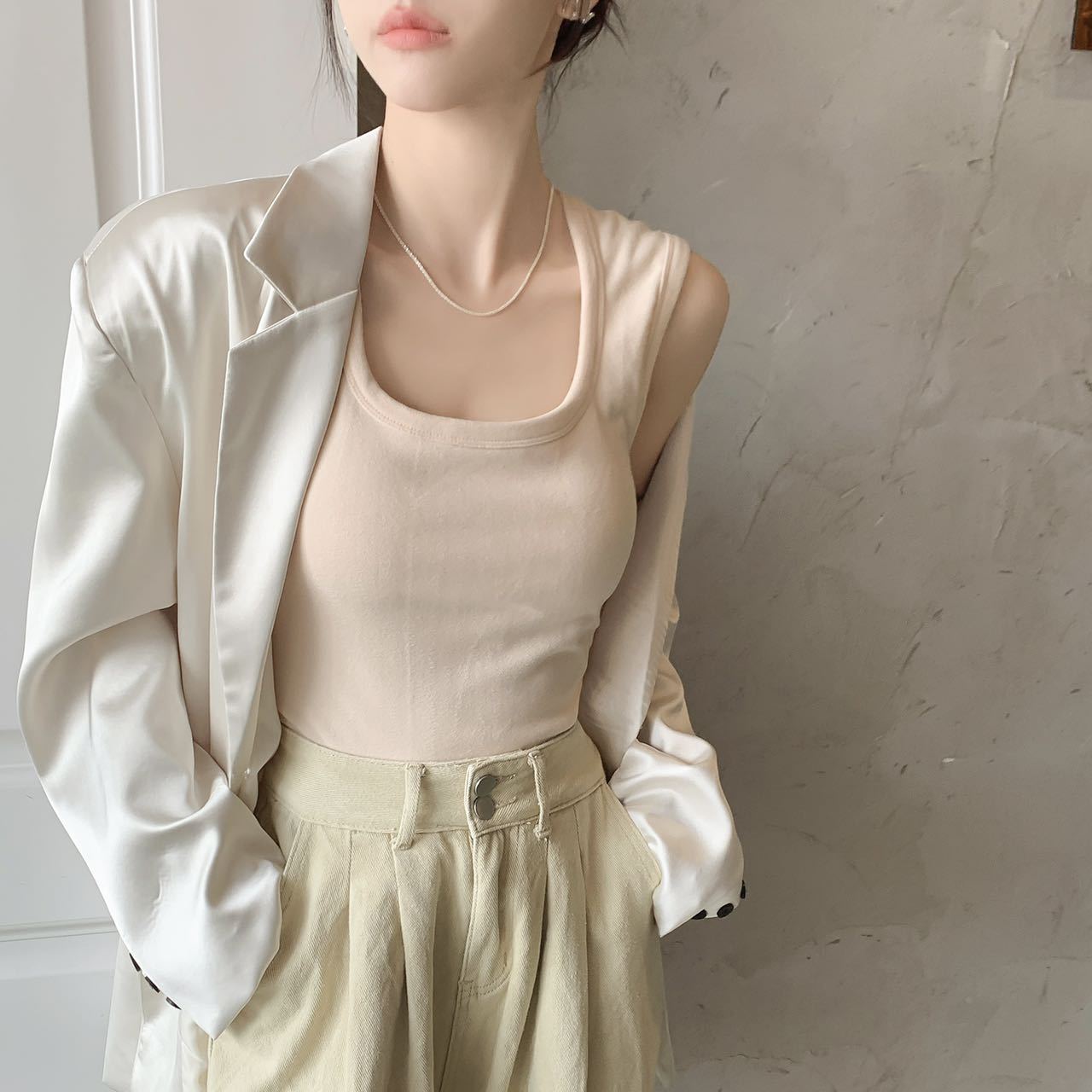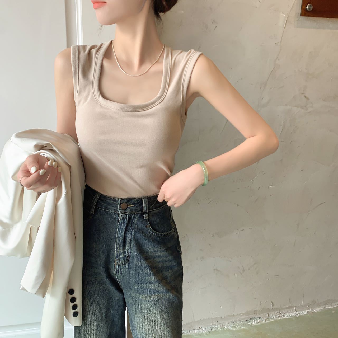 Otoño e Invierno nuevo estilo cálido hilo de terciopelo cómodo terciopelo cuello cuadrado color sólido chaleco ropa interior para mujer con almohadilla en el pecho tirantes top básico