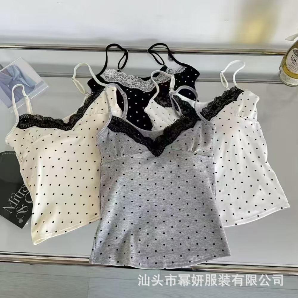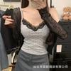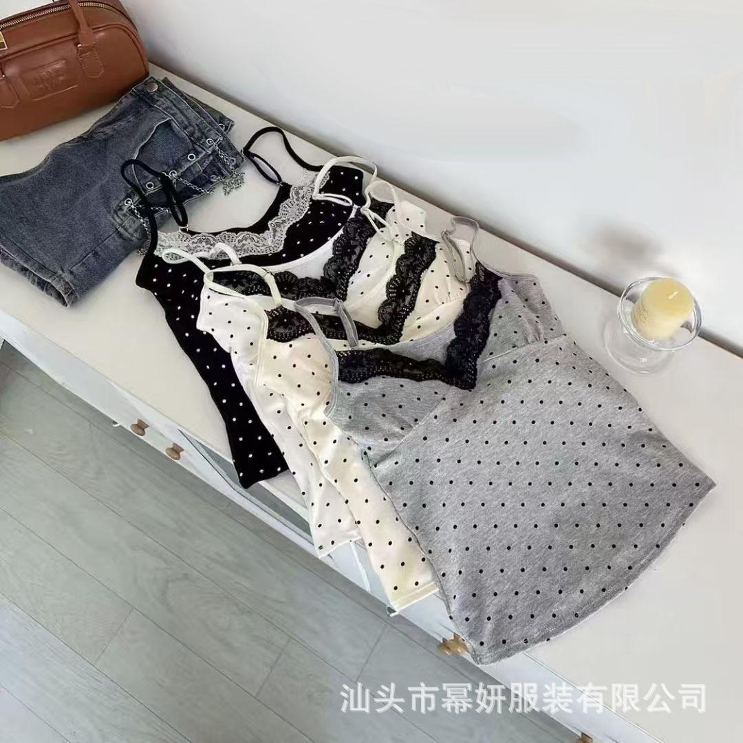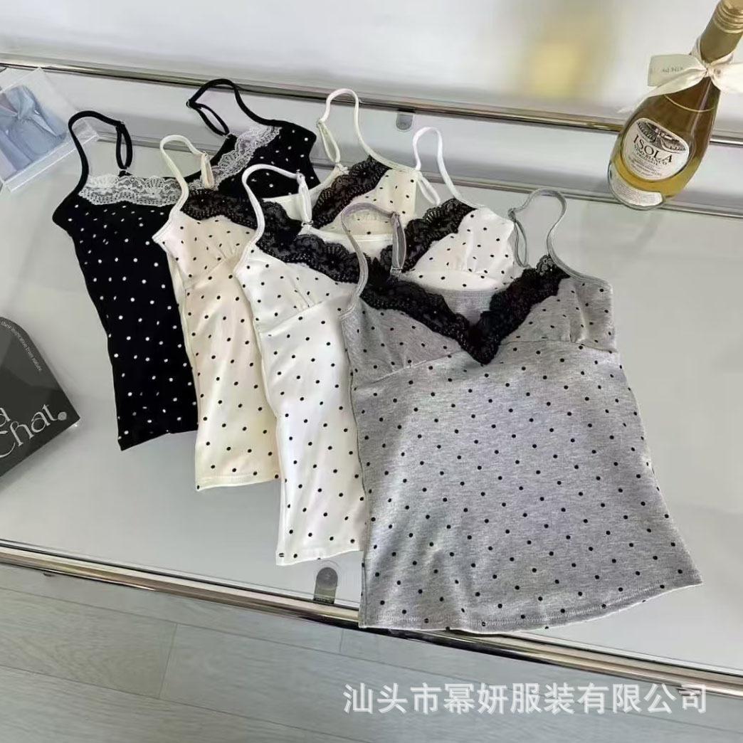 Camisola de encaje de lunares de onda francesa pura para mujer, dulce chica picante, costuras, cuello en V para niña, adelgazante, top combinable