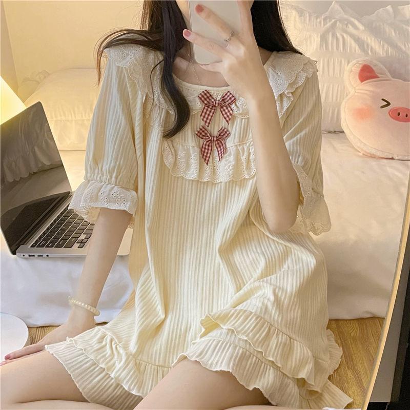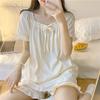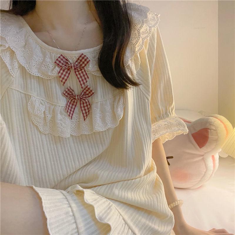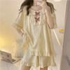 Pijamas Dulces Estilo Ins Japonés para Mujer Verano Niñas Encaje Lazo Volantes Ropa Exterior Conjunto Ropa para el Hogar