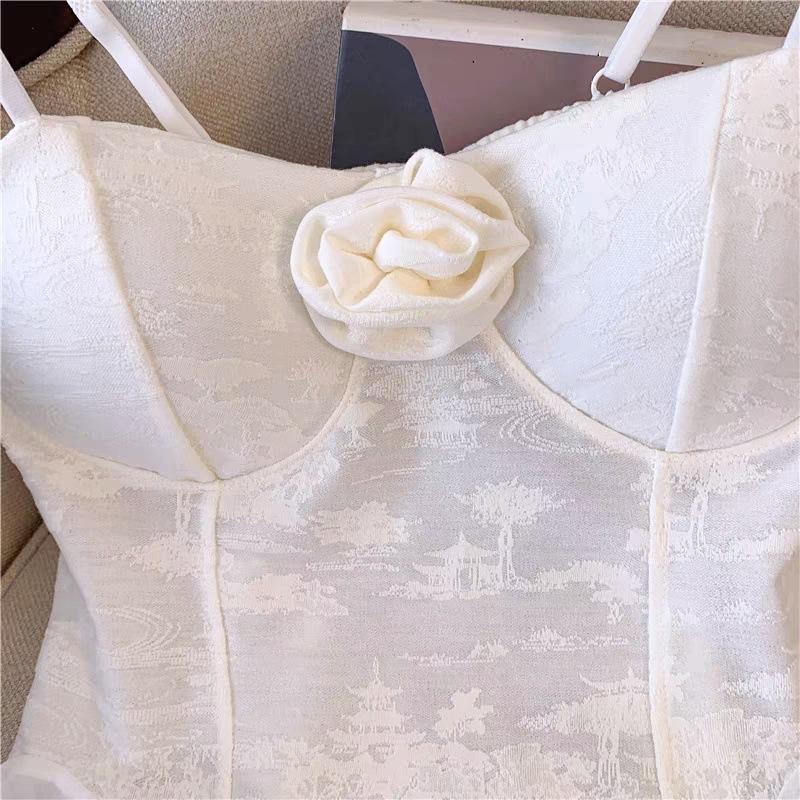 Chaleco sin mangas L279 para mujer con almohadillas para el busto, Nuevo Elegante, Dulce Cinta de Tirantes Jacquard, Top Chic de Nicho