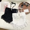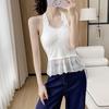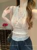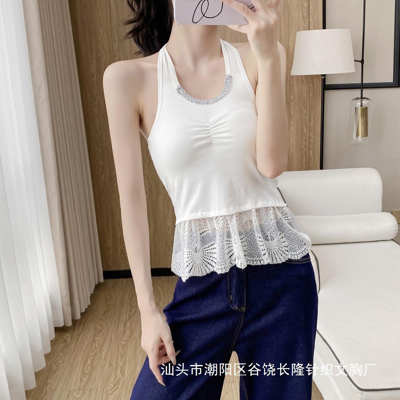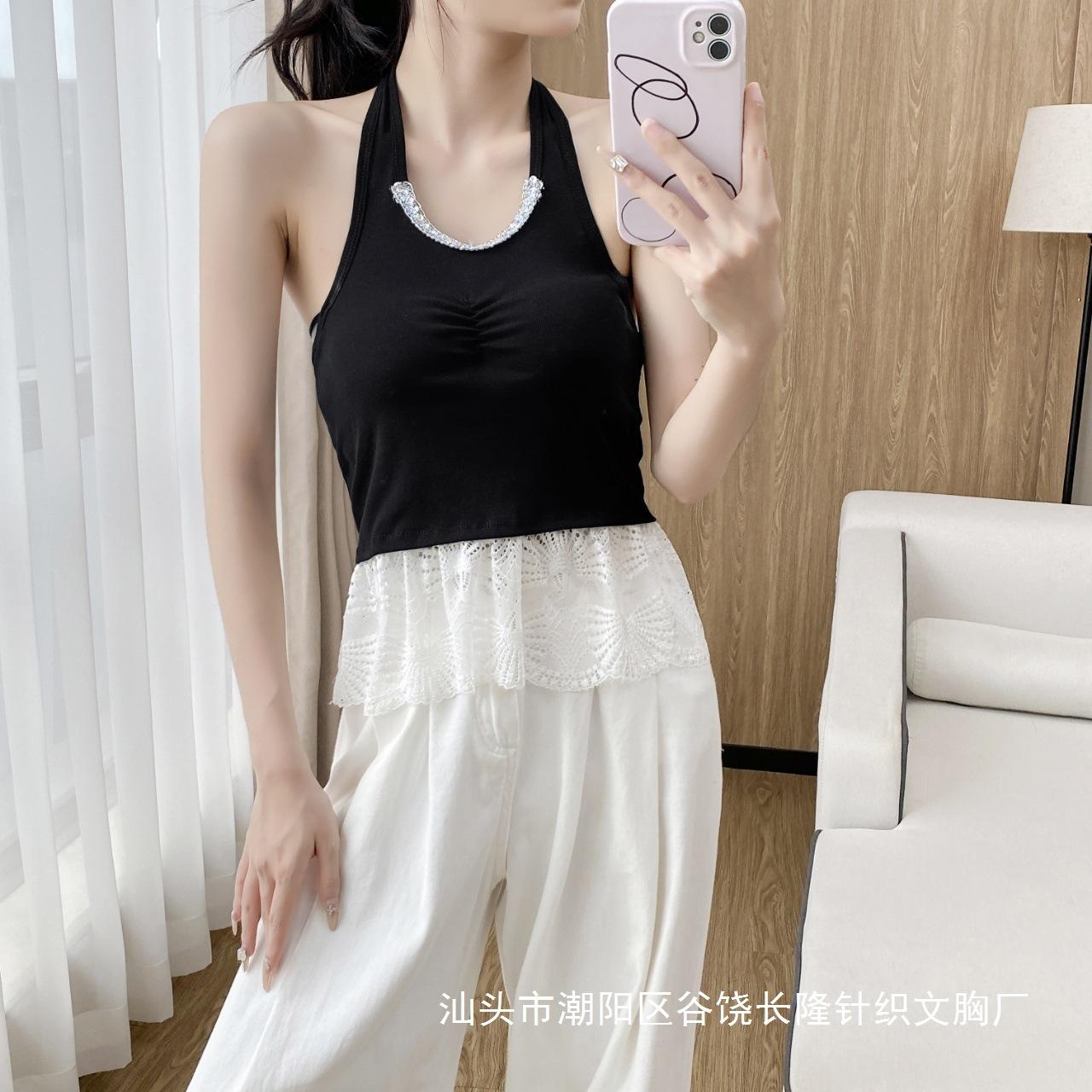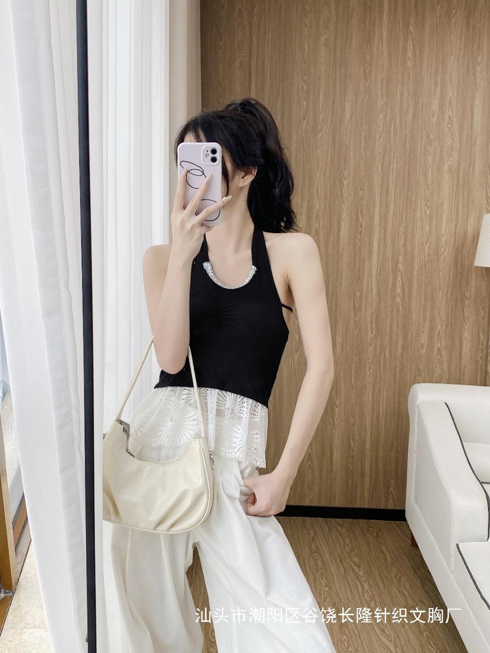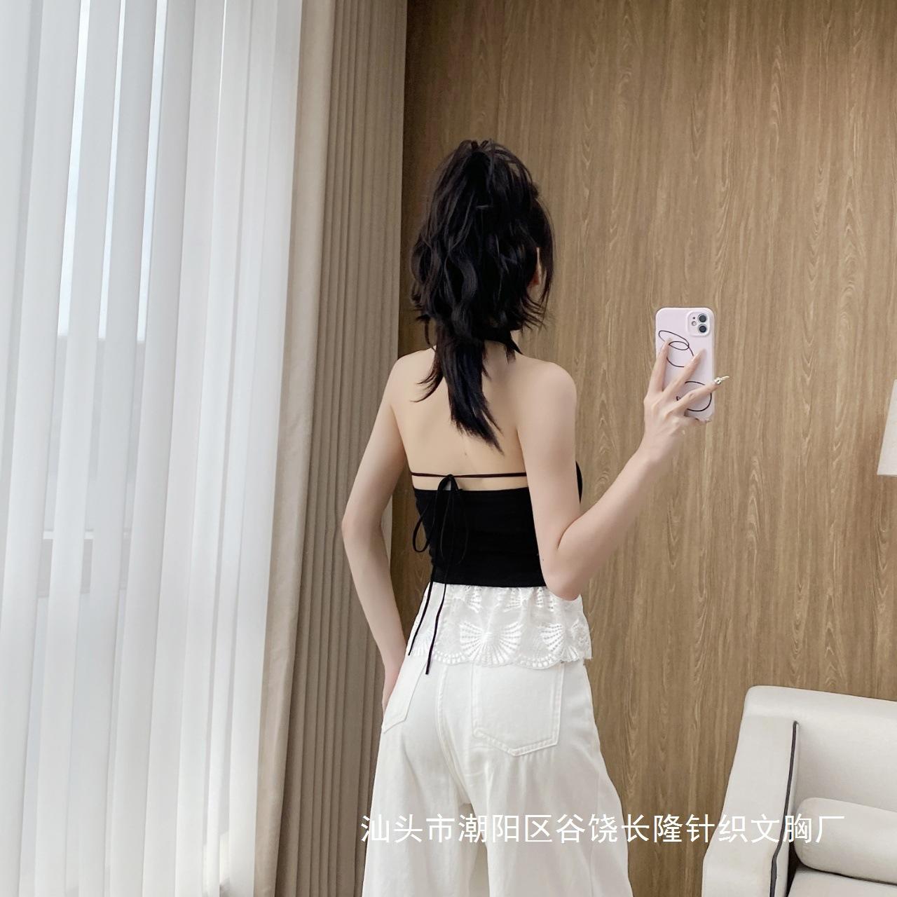 Dulce Vestido Tank Rojo sin Espalda y sin Mangas para Chica Caliente con Lazo, Hermoso Patchwork de Encaje en la Espalda, Cubre el Abdomen, con Copas en el Pecho, Top Halter