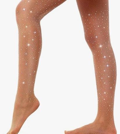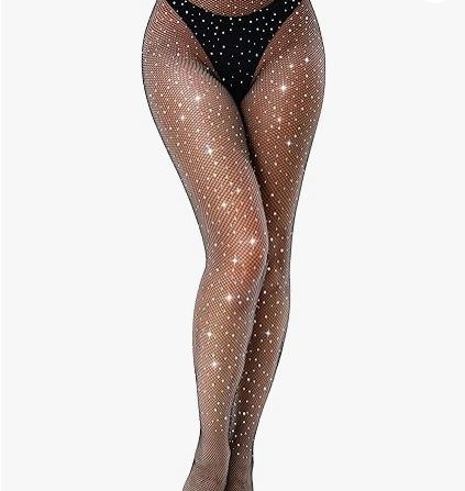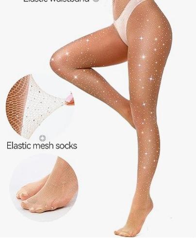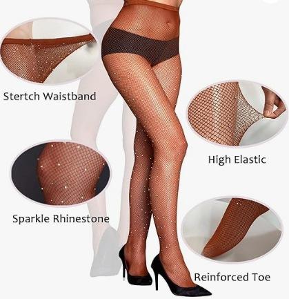 Medias de Red de Pedrería de Malla Fina Estilo Europeo y Americano, Estilo Delgado de Verano, Medias de Red de Una Pieza de Malla Hueca con Pedrería de Diosa