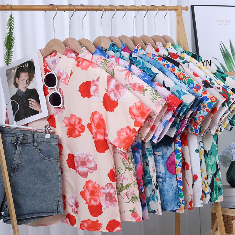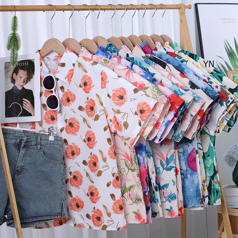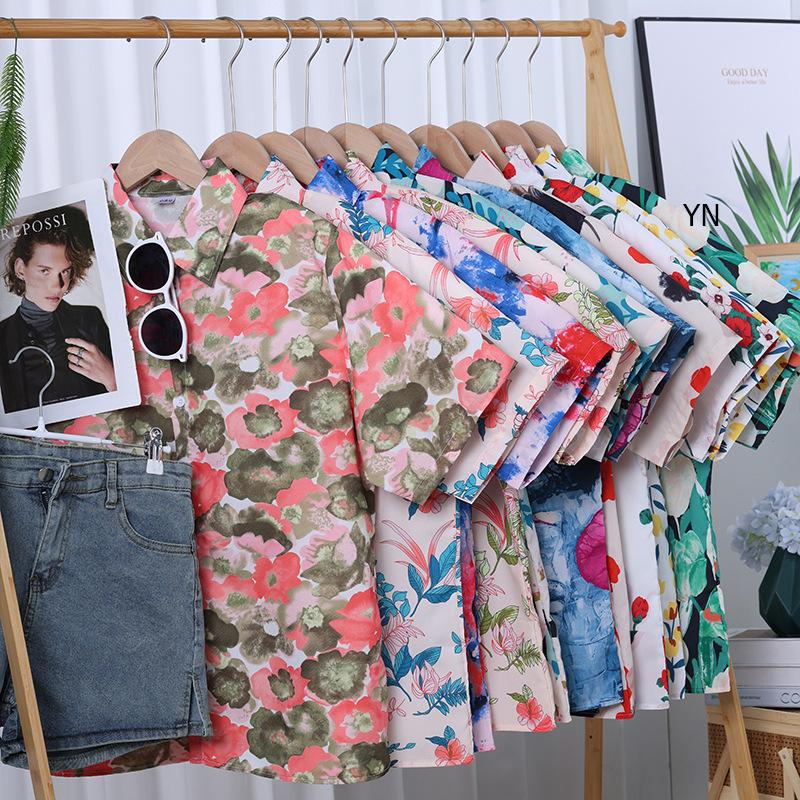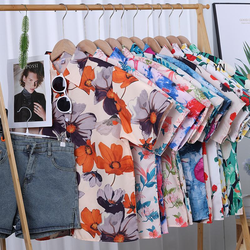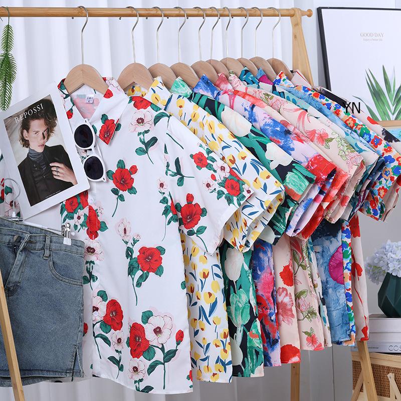 Camisa de Manga Corta con Estampado Floral Estilo Retro Hong Kong para Mujer Verano Diseño Nicho Sentido Moda Elegante Suelta Slim