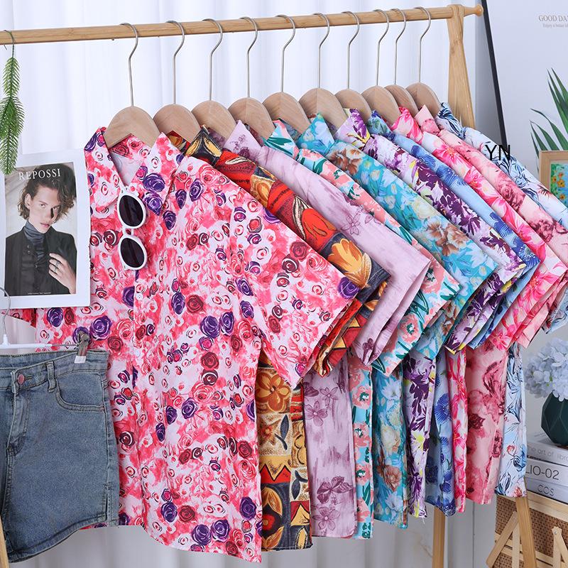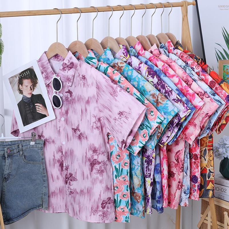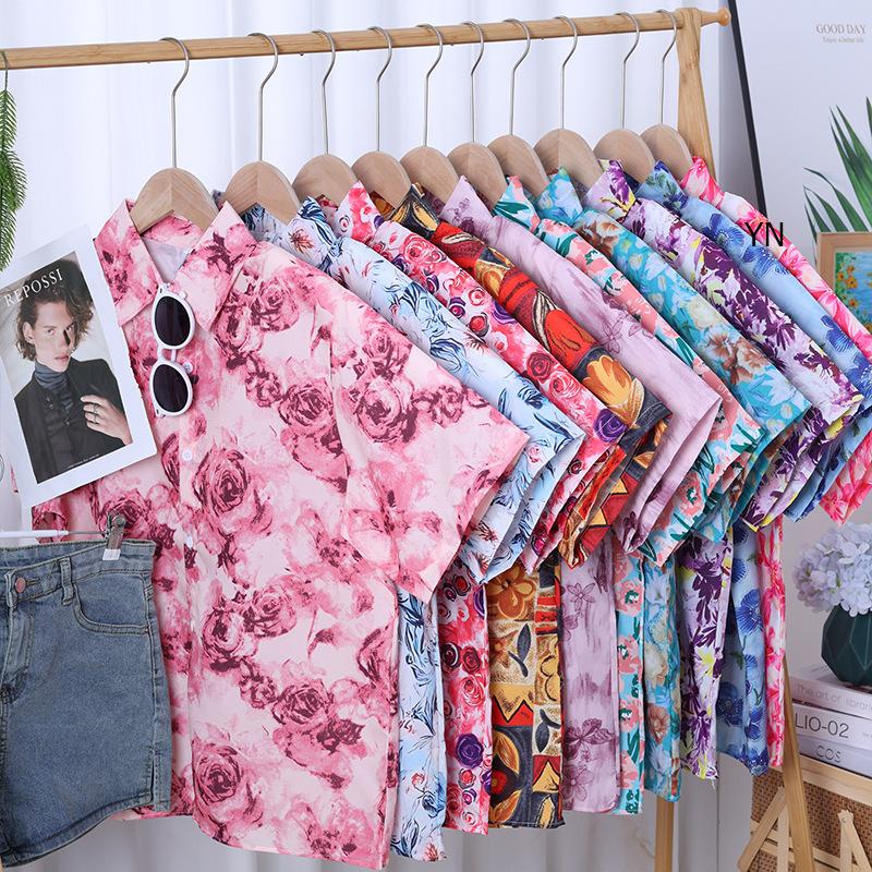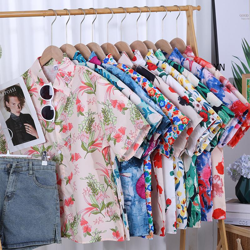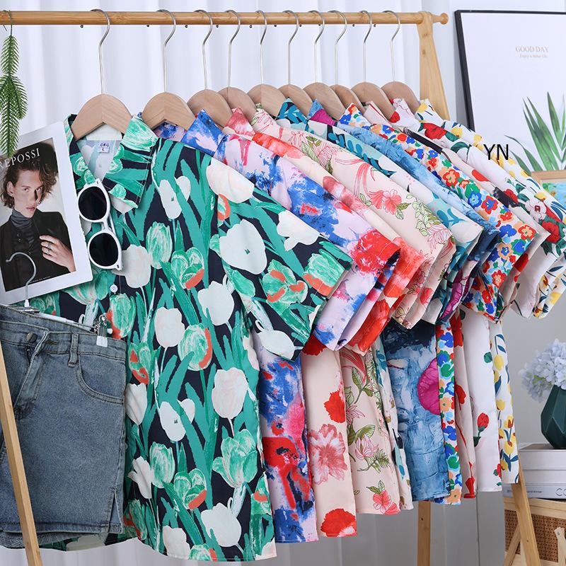 Camisa de Manga Corta con Estampado Floral Estilo Retro Hong Kong para Mujer Verano Diseño Nicho Sentido Moda Elegante Suelta Slim