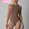 Body de Cuello Alto Cuello Alto Doble Capa Desnudo Mono Transpirable Alta Elasticidad Yoga Mono Sin Mangas