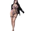 Purple wind chime [bra + panties + waist ring and leg ring], Purple wind chime suit + black stockings