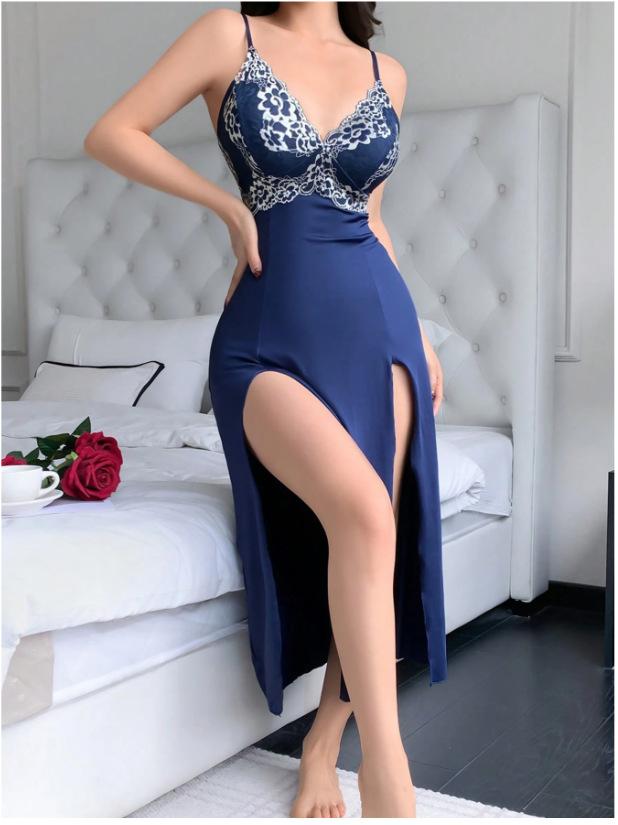 Suministro de Comercio Exterior Lencería Sexy Nueva Europea y Americana Sexy Encaje Estampado Espalda Hueca Camisón con Tirantes al por Mayor