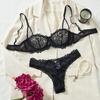 Lencería Sexy Transfronteriza Europea y Americana Lencería Sexy para Mujer Moda Sexy Deseo Puro Delgada Transparente Hueca Set de Sujetador Sujetador