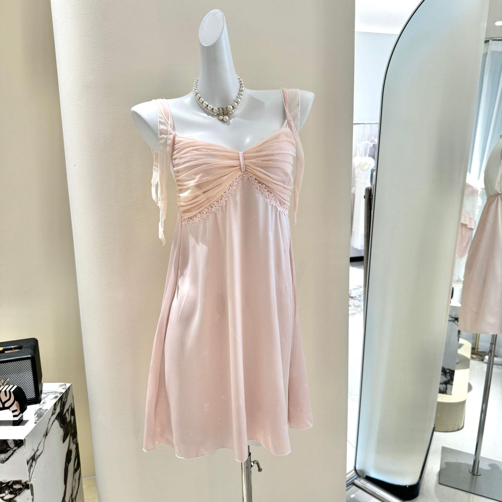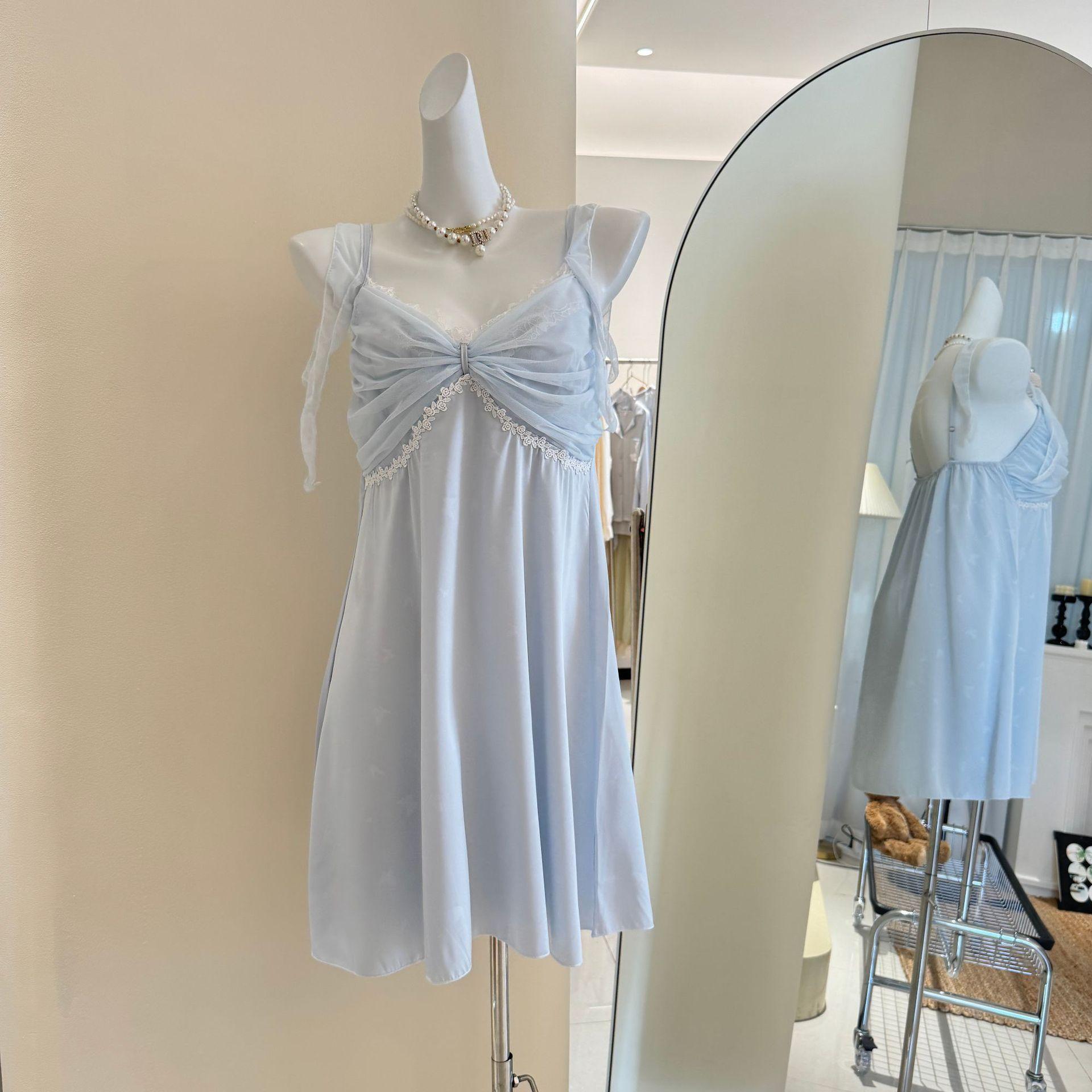 Camisón de Seda de Hielo Verano Nuevo, Deseo Femenino Puro, Estilo Princesa Dulce Pijama Delgado de Tirantes, Ropa para el Hogar de Verano
