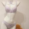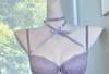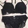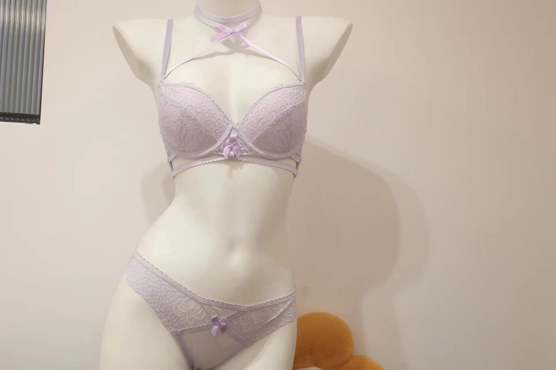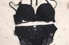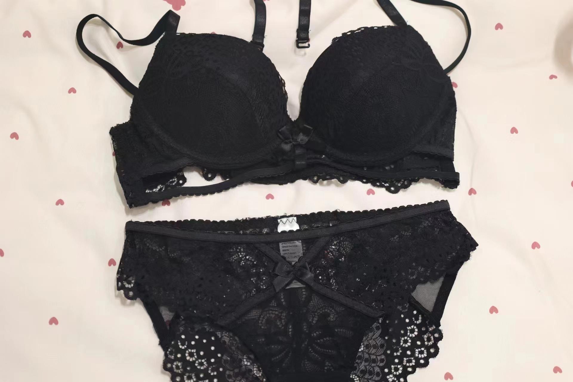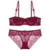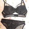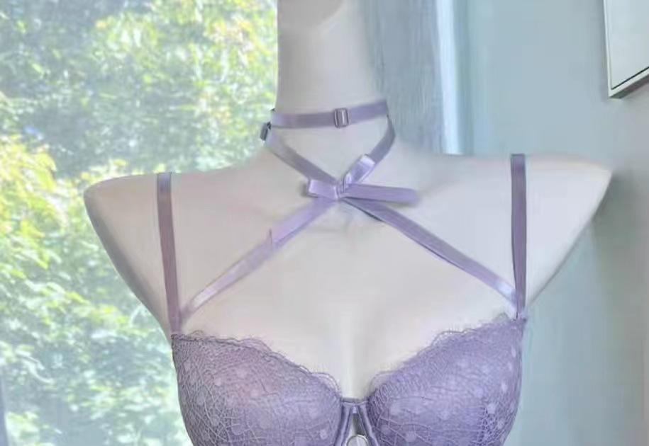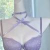Conjunto de Sujetador Interior Sexy de Encaje y Algodón con Copa Fina Superior y Gruesa Inferior Push-up con Lazo al Cuello