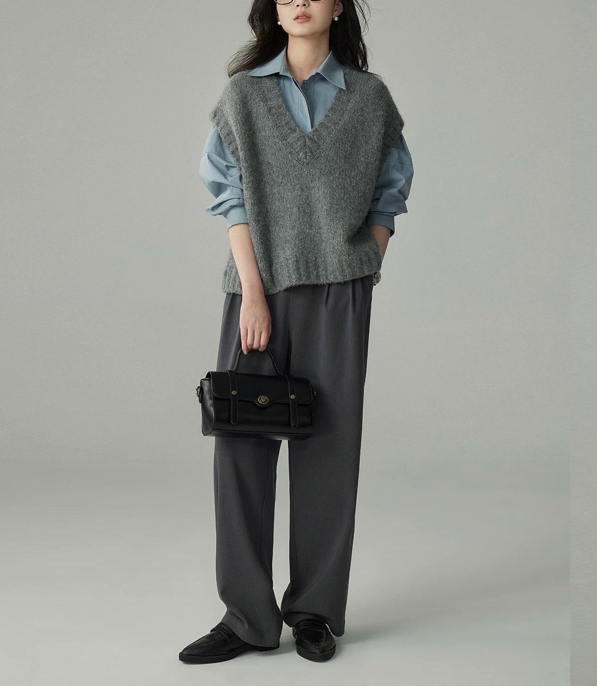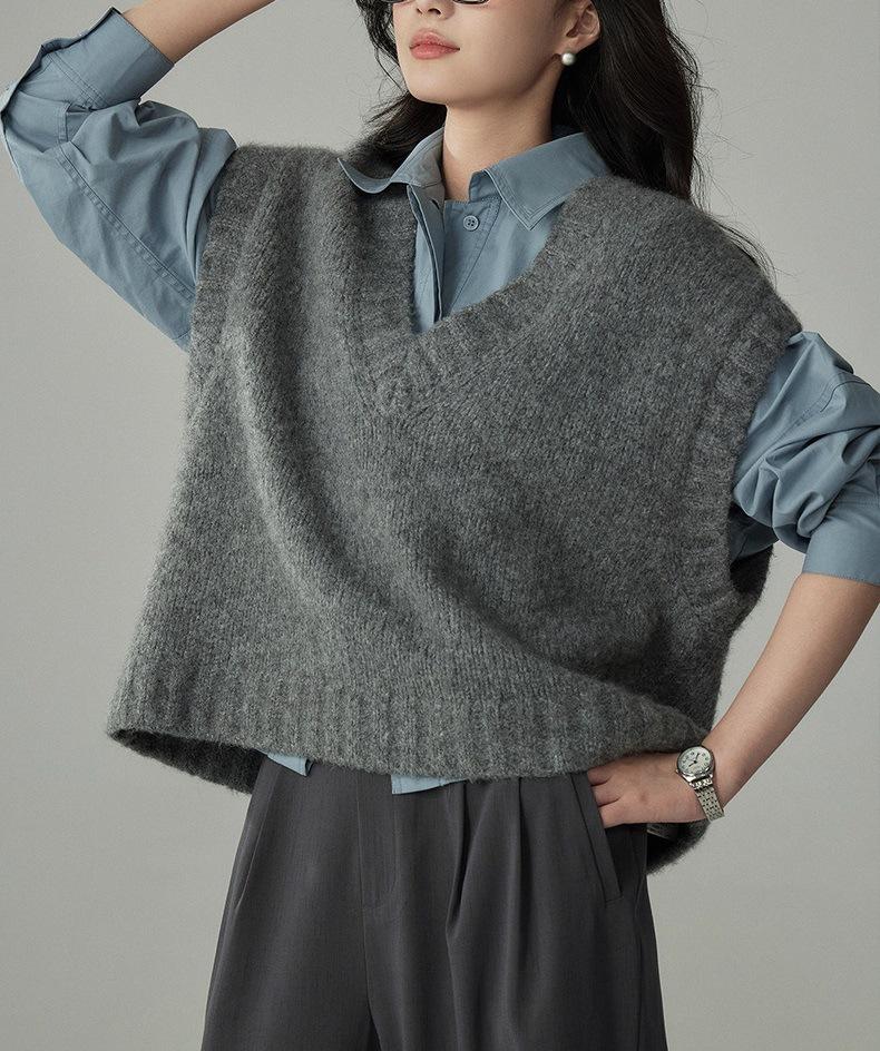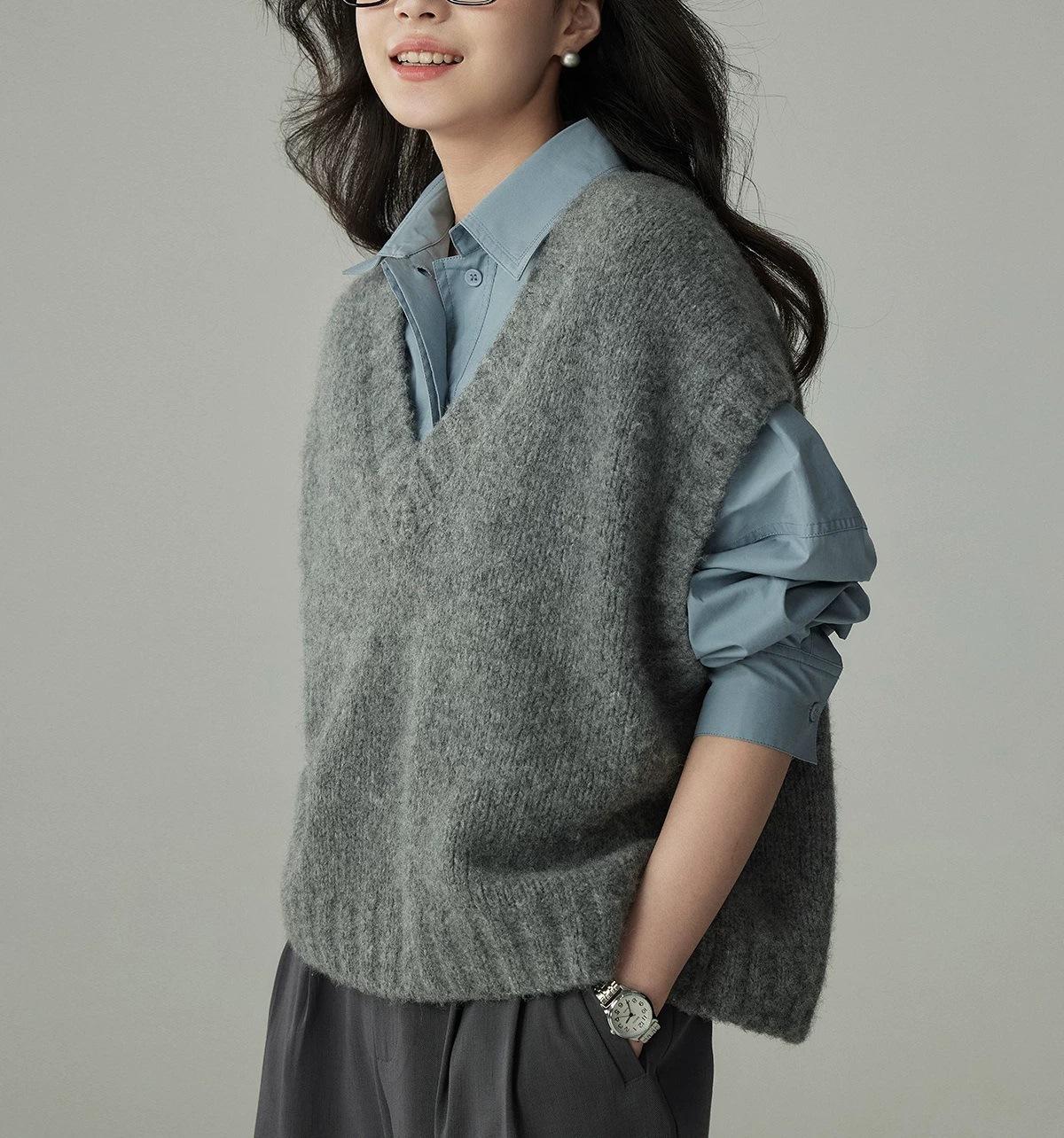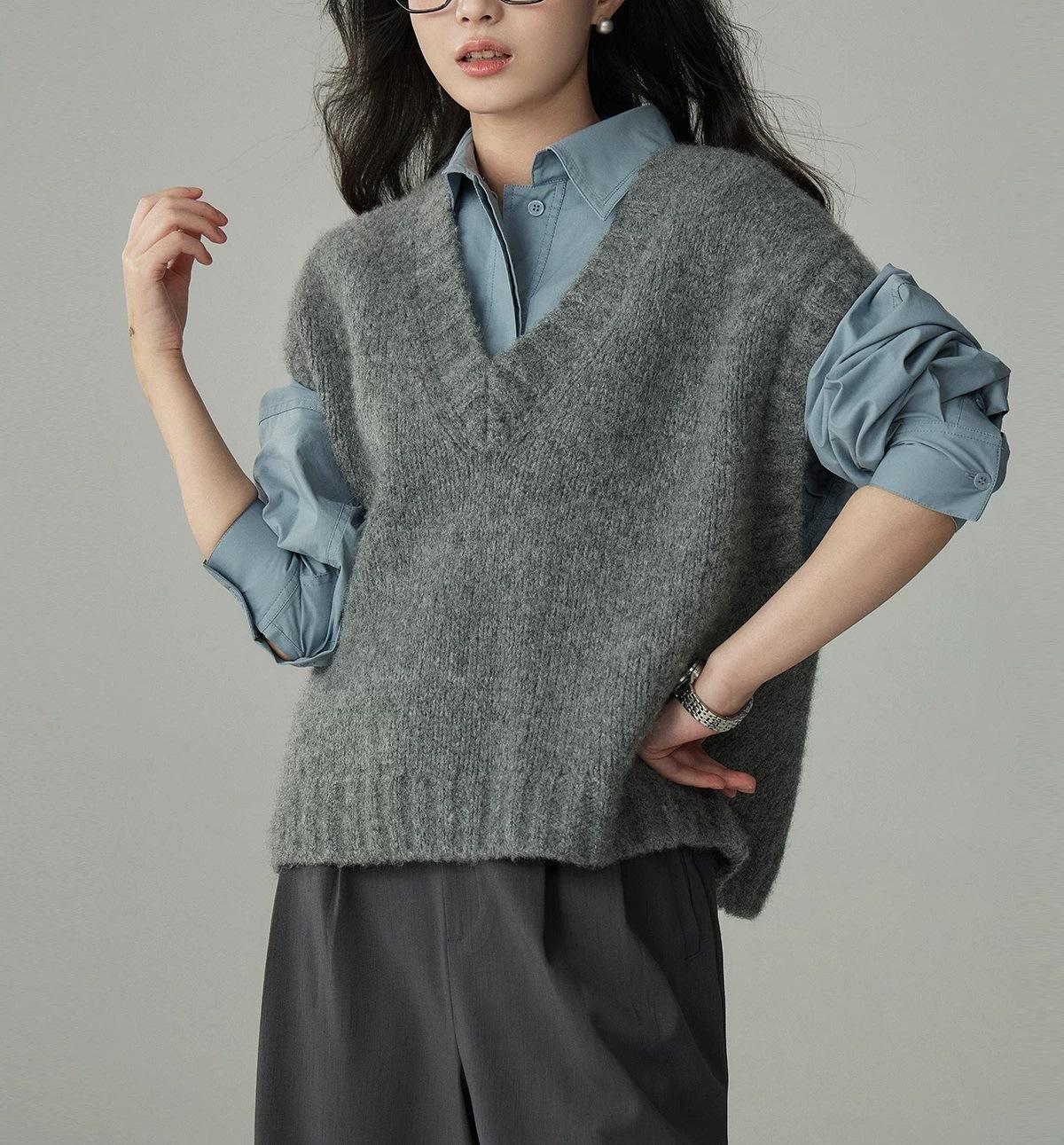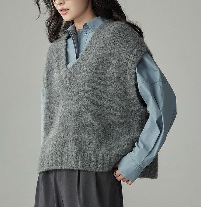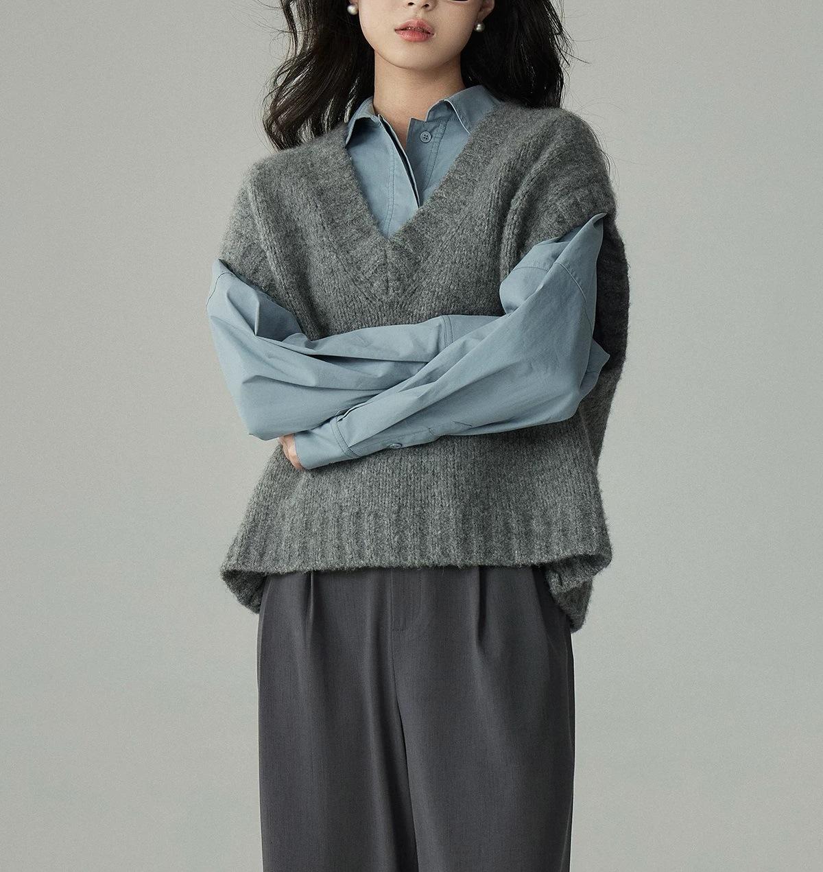 Camisa de Perfil de Lana Chaleco de Punto Apilado para Mujer Otoño e Invierno Estilo Coreano Retro Chaleco Suéter Holgado