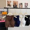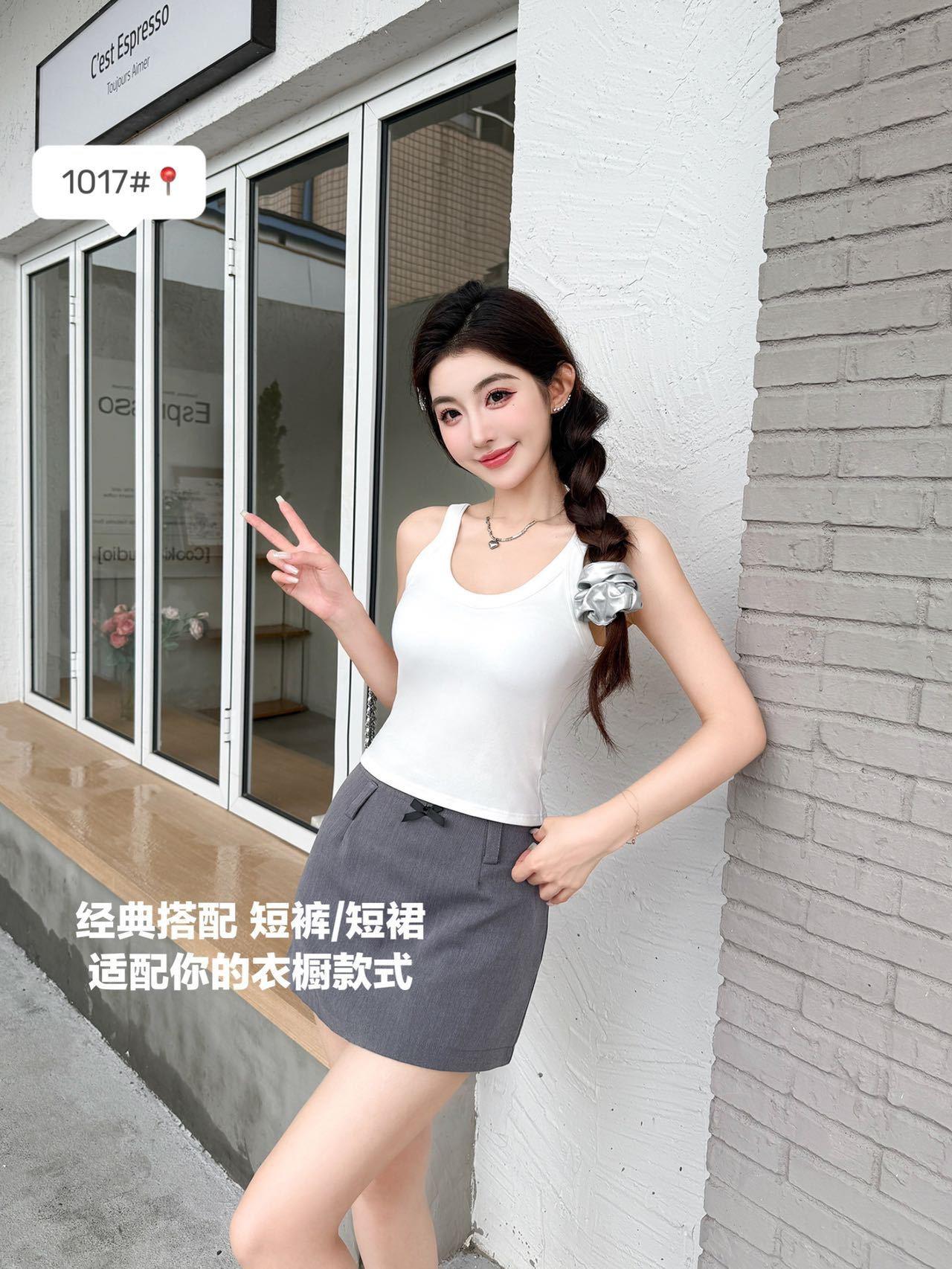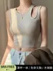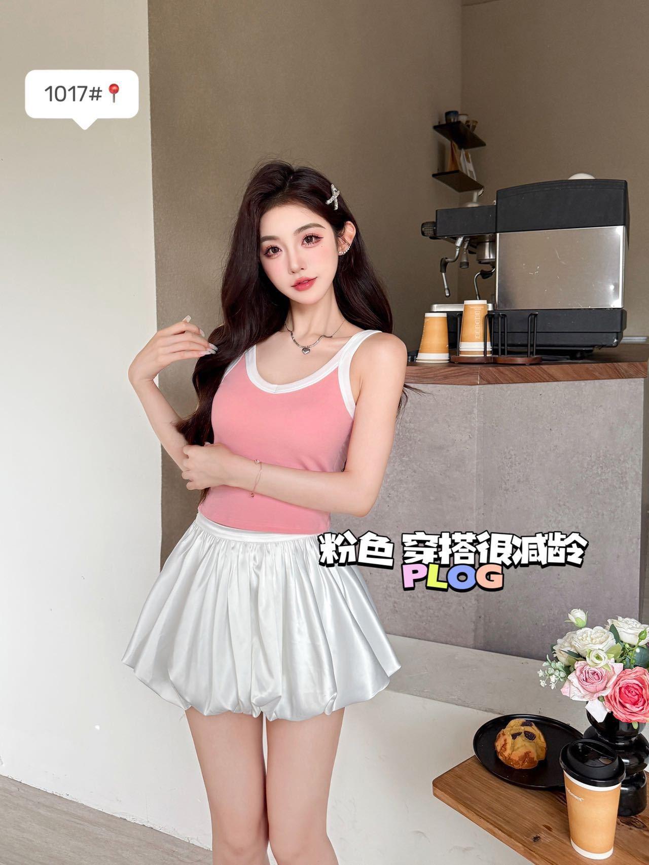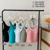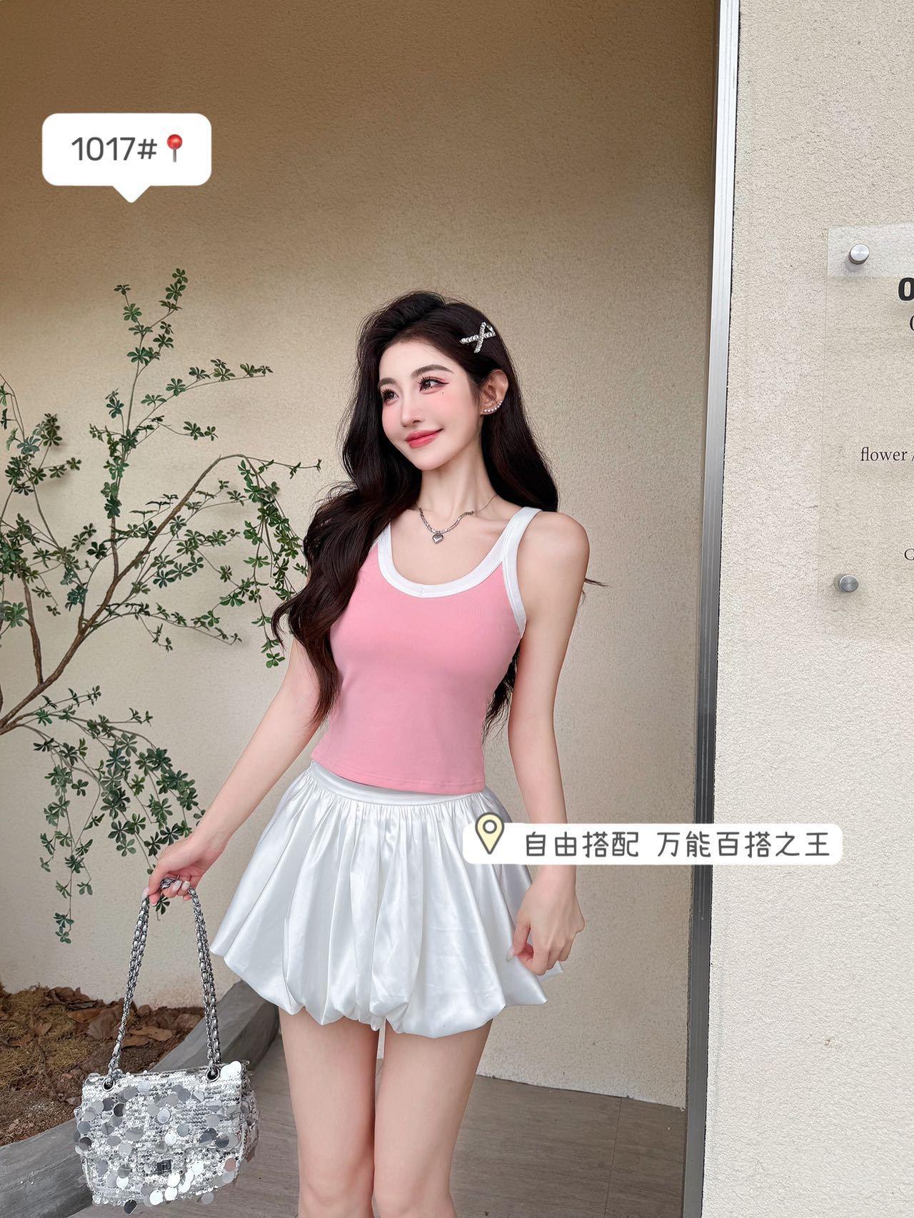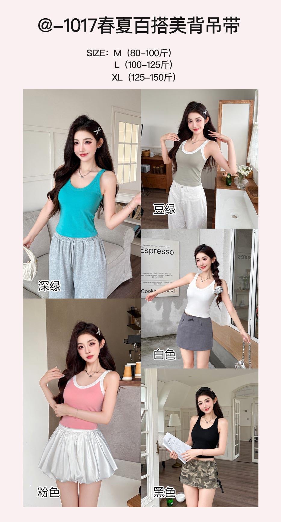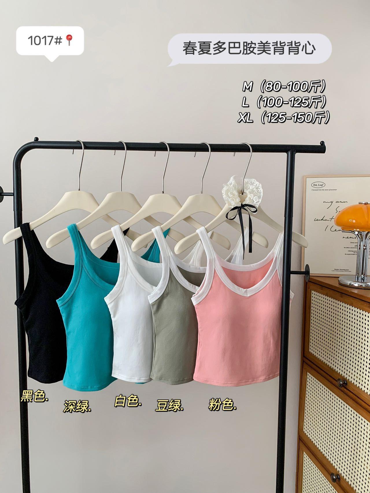 1017 # Camisola de Algodón Puro a Contraste con Almohadillas en el Busto para Mujer para Usar por Fuera y por Dentro con Ombligo Descubierto Look Adelgazante Cuello en V Hermosa Espalda Top