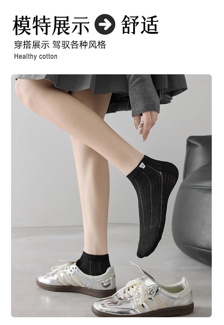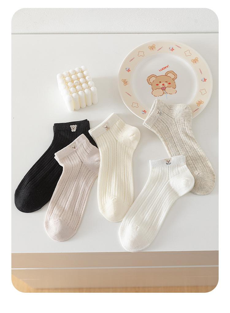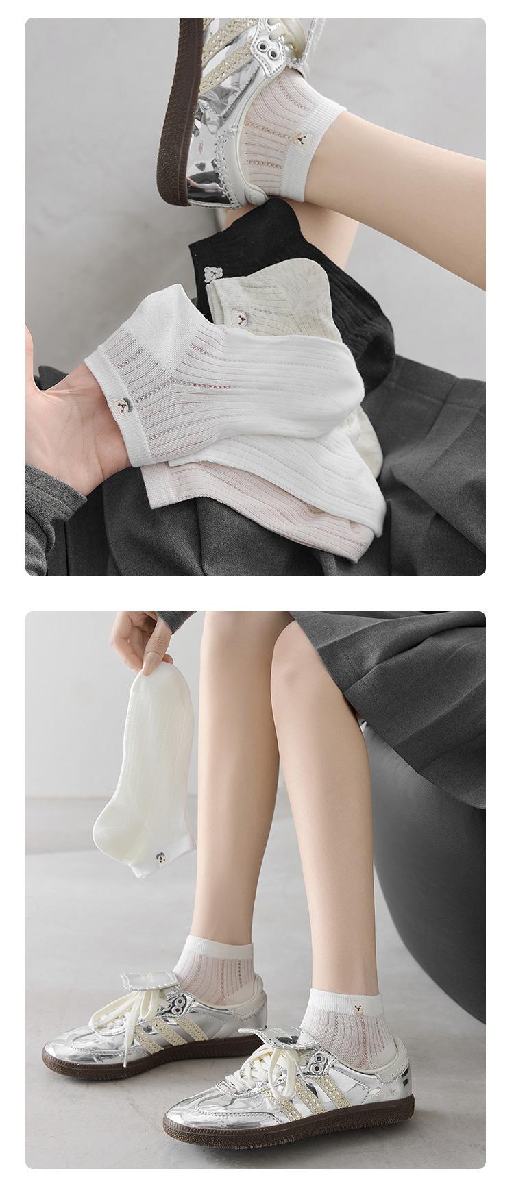 Calcetines de Osito para Mujer Calcetines Finos de Verano Color Sólido Malla Transpirable Antideslizantes Transpirables Estilo Japonés Calcetines de Barco Lindos