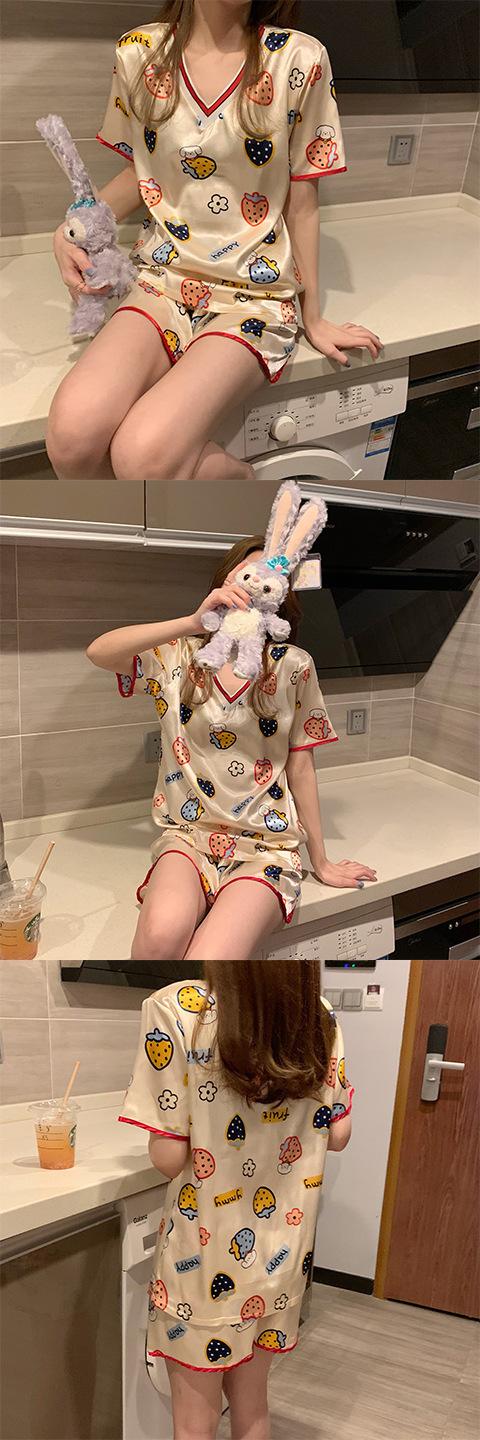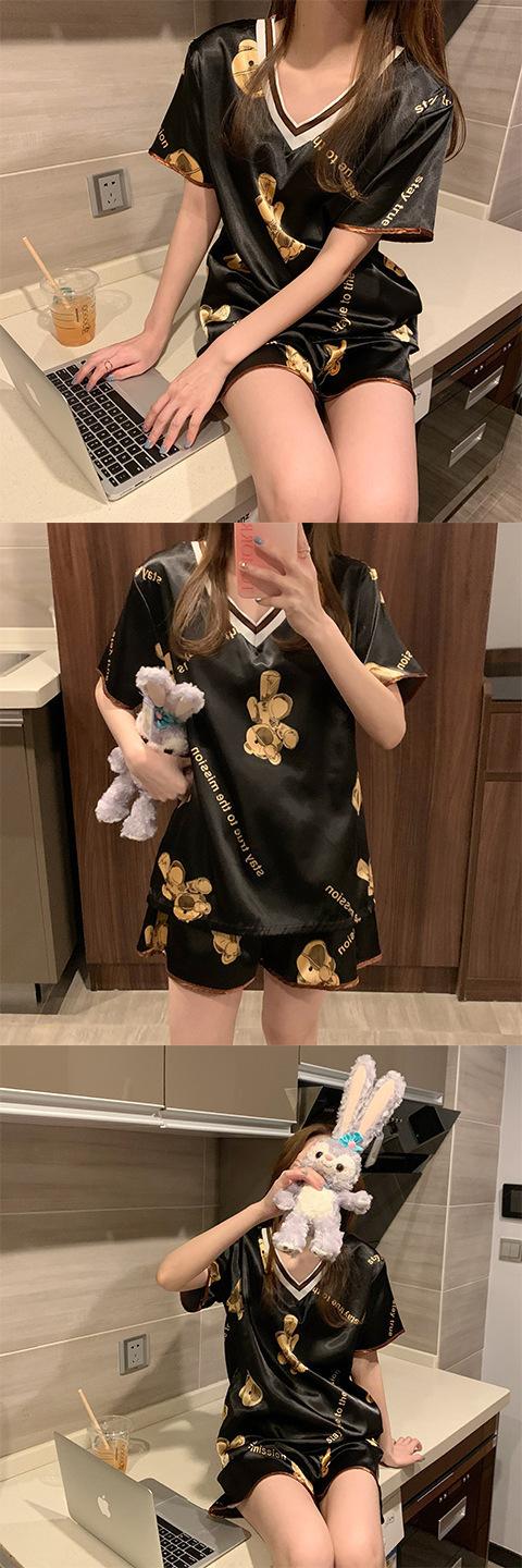 Pijamas para Mujer Verano Seda de Hielo Traje Delgado Manga Corta Shorts Seda Conjunto de Dos Piezas Verano Imitación Seda 2025 Nuevo Estilo