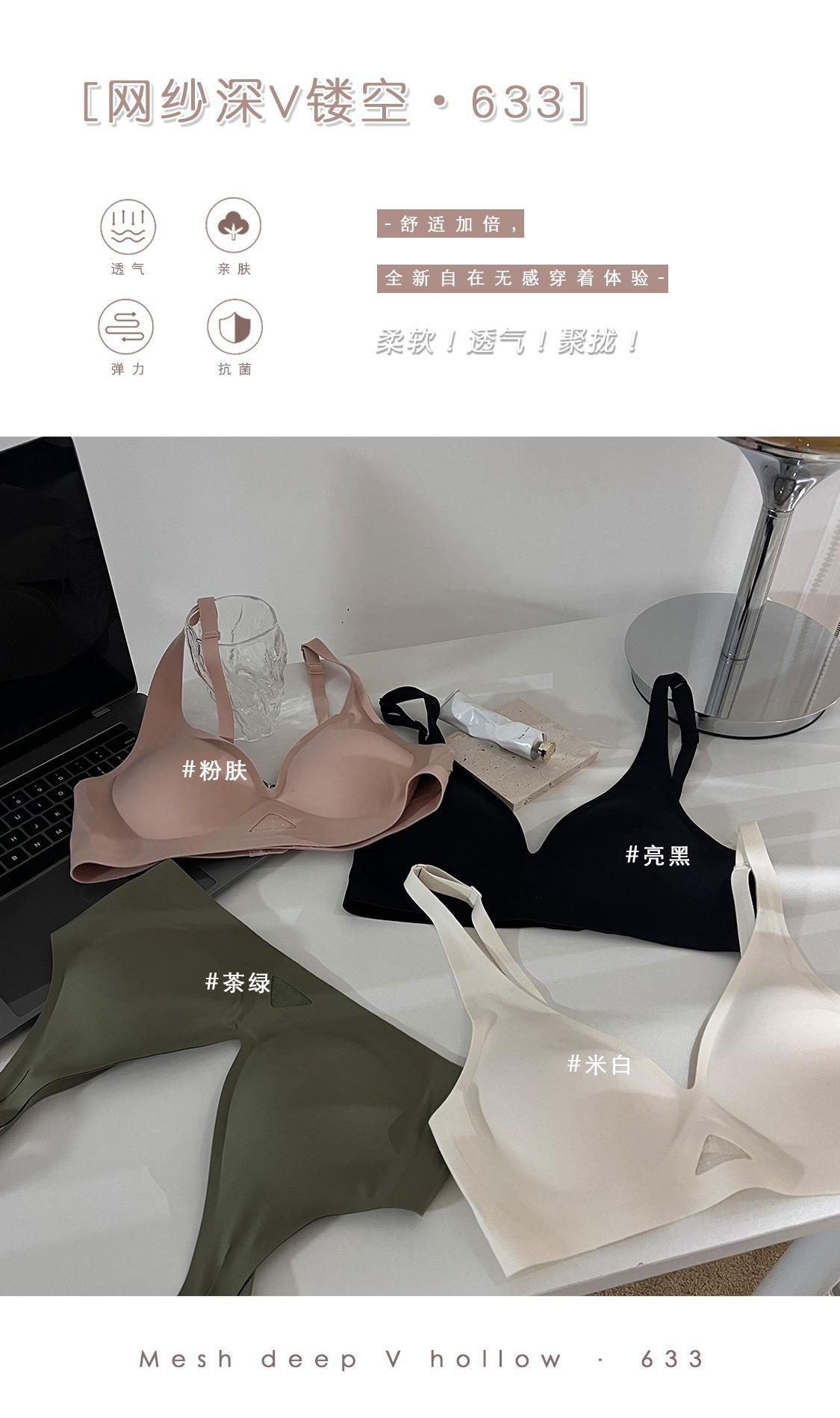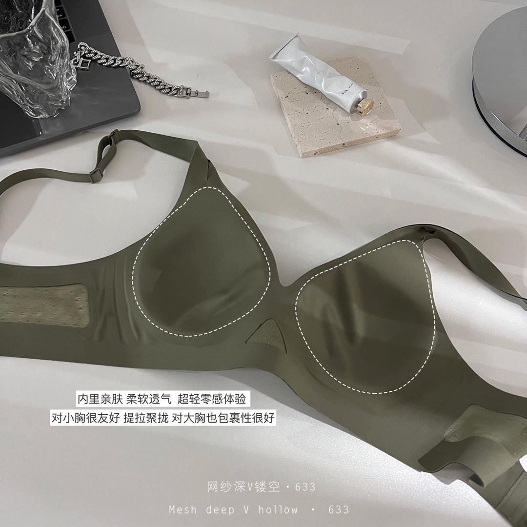 Ropa Interior de Gel de Soporte Suave para Mujer Malla Profundo V Calado Sin Varillas Sin Costuras Recolector Cómodo Ligero Transpirable Sujetador