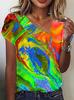 Verano 2025 Amazon Wish Transfronterizo Popular Cómodo Tops de Manga Corta para Mujer Abotonados Cuello en V Camisetas Estilo Europeo y Americano