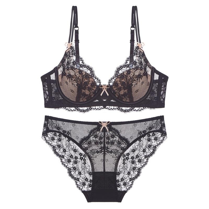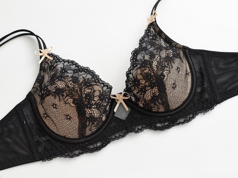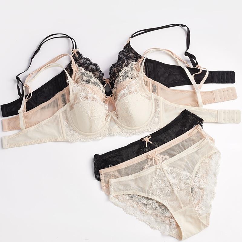 Nuevo Lazo de Encaje Francés Lencería Deseo Puro Sexy Sujetador Reductor para Busto Grande Sujetador Delgado Set con Varilla para Mujer