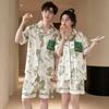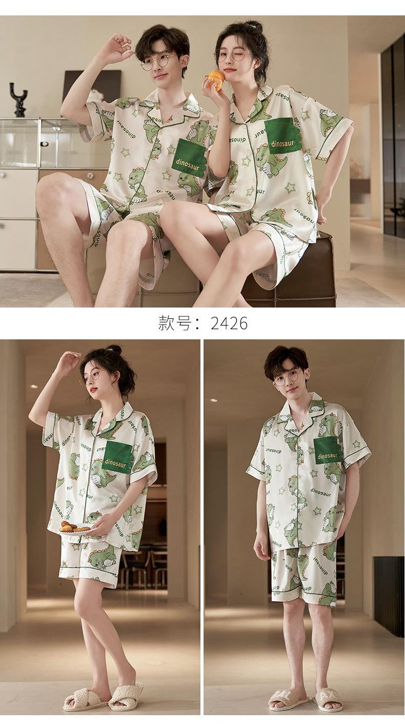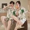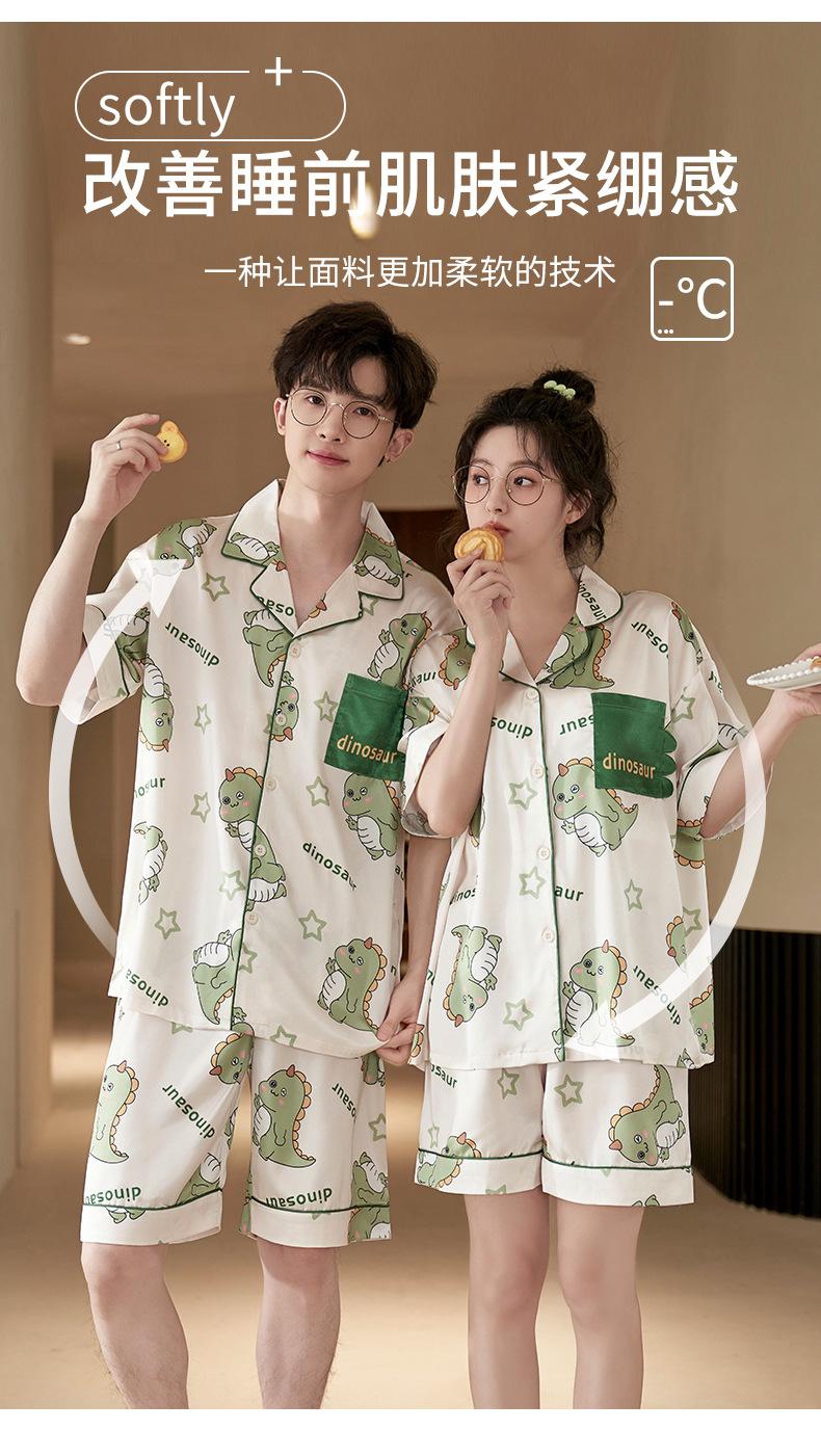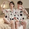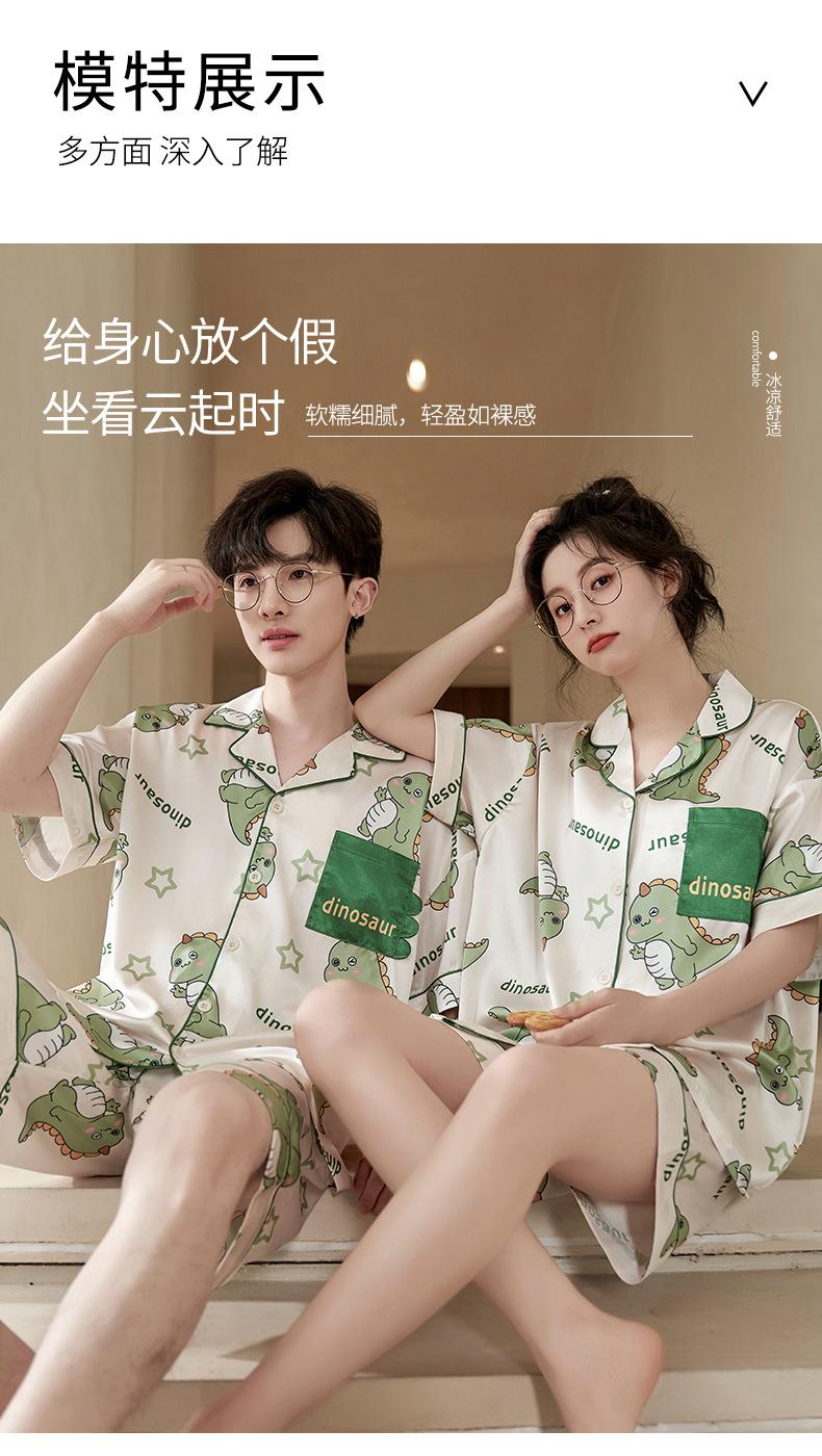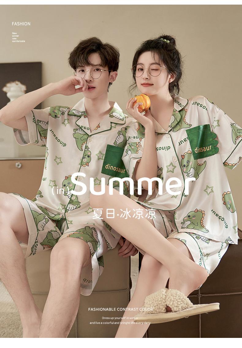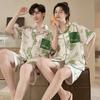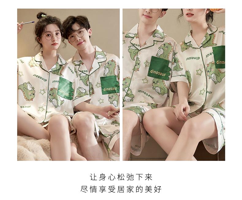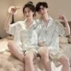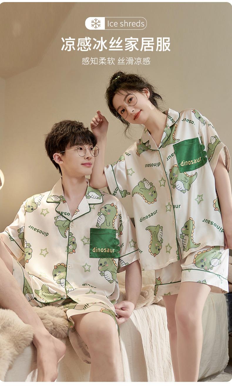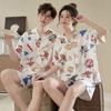 Pijamas de Pareja de Seda de Nieve Verano Dibujos Animados Lindo Alta Gama Holgado Delgado Dos Piezas Ropa para el Hogar Traje de Manga Corta