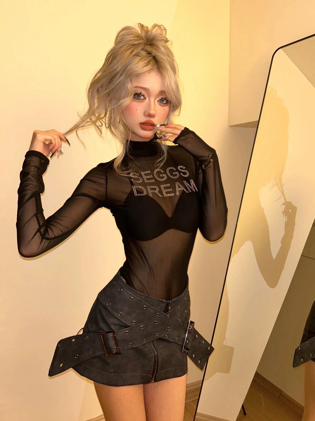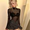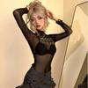 Lencería Sexy con Tentación de Deseo Puro, Body de Manga Larga con Cierre Oculto de Pedrería, No Necesita Quitarse, para Mujeres Qqny