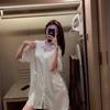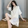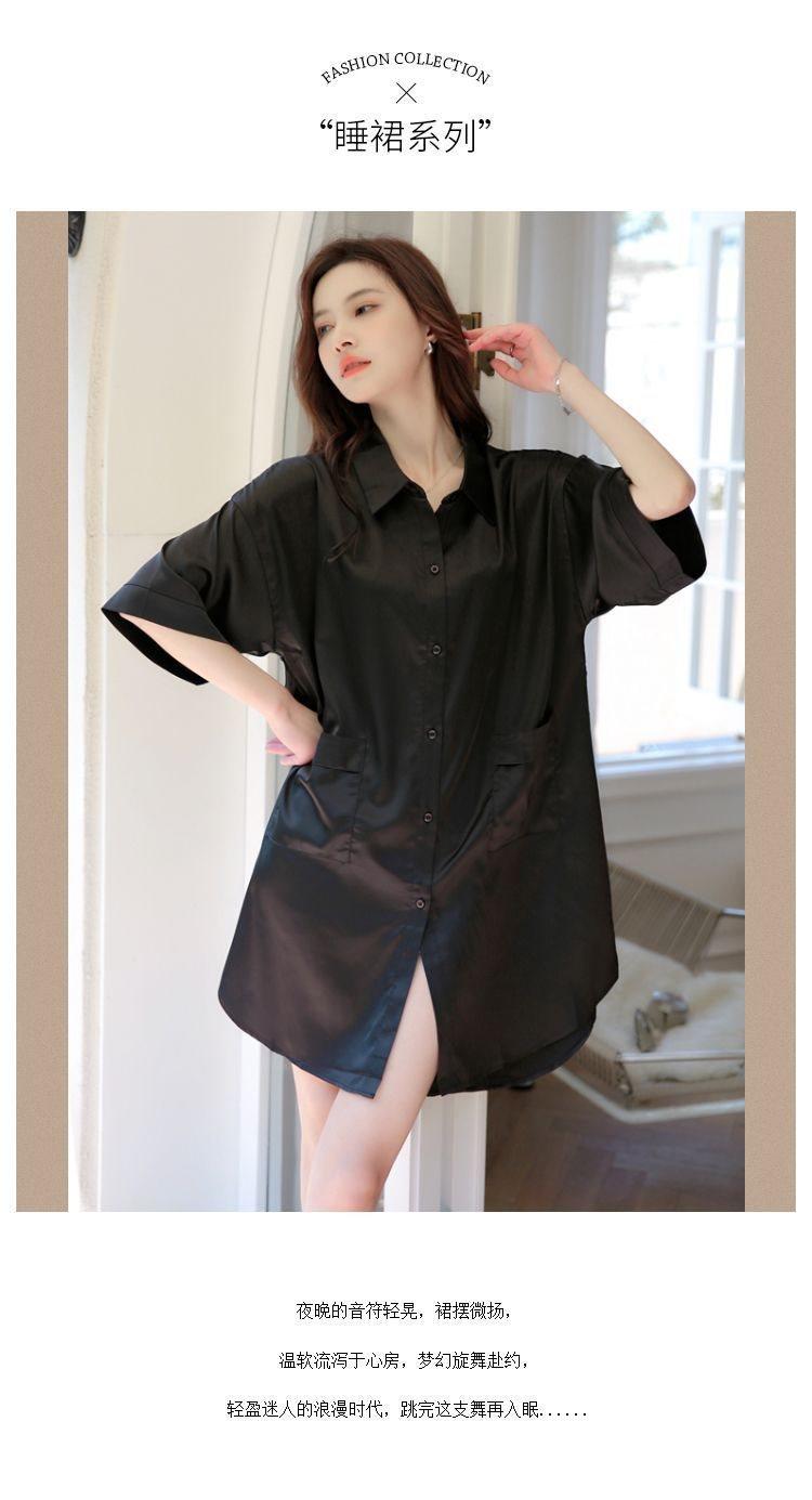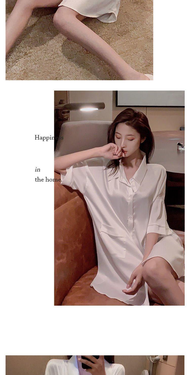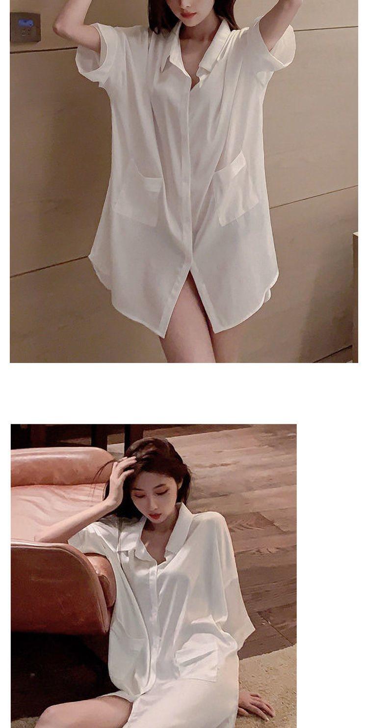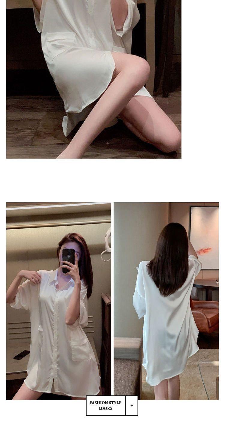 Camisón 2025 para Mujer Primavera y Verano Seda de Hielo Sexy Delgado Estilo Novio Camisa Blanca Popular Media Longitud Pijama de Seda Imitación