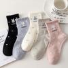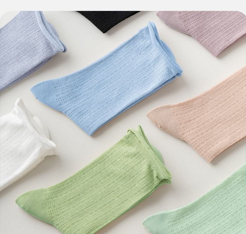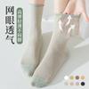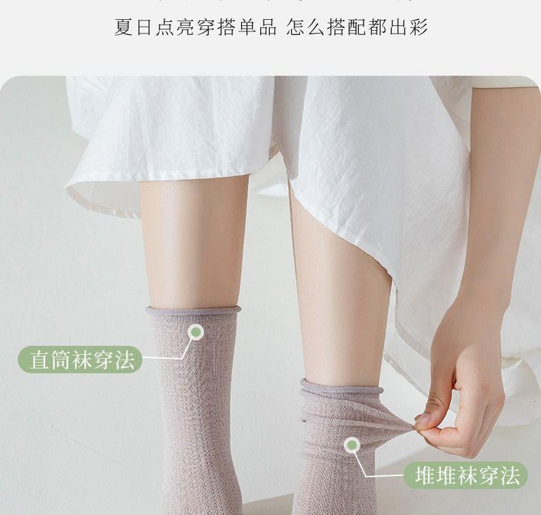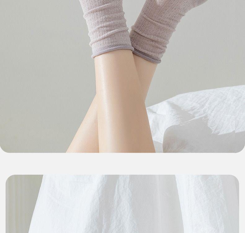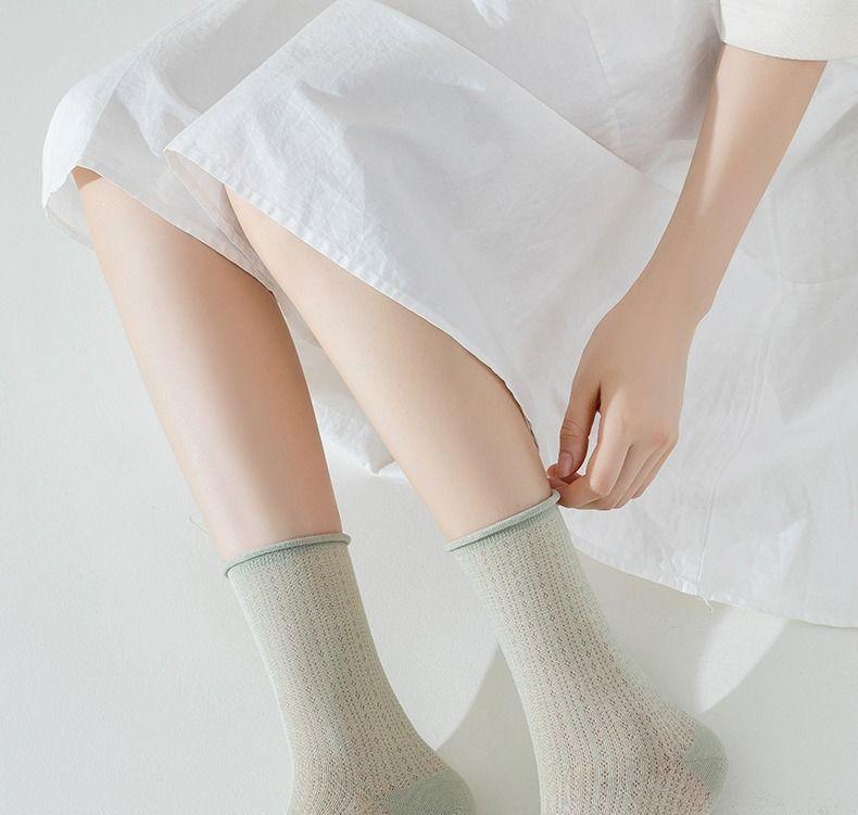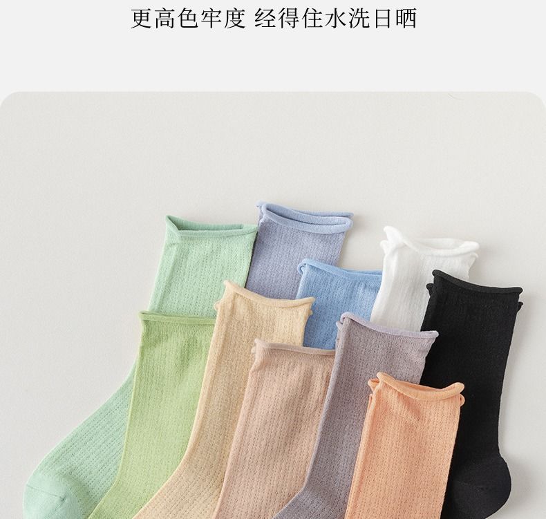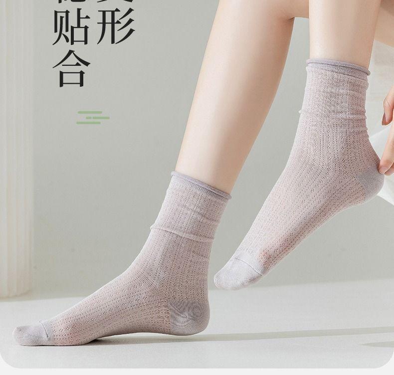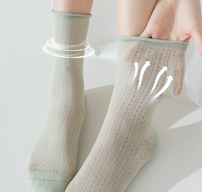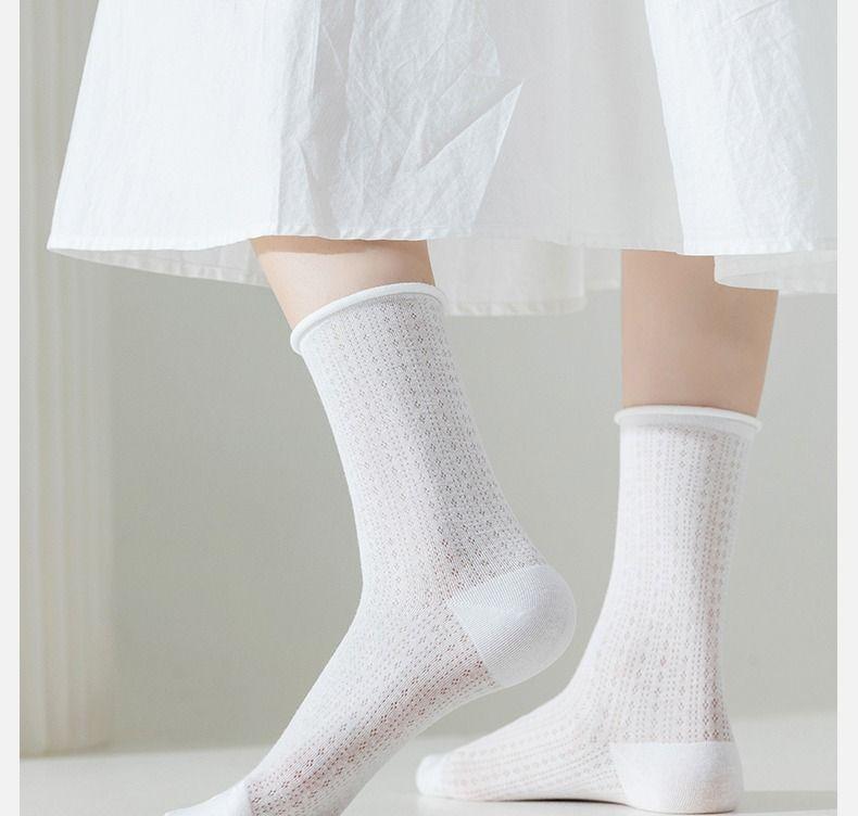 Calcetines de felpa calcetines de curling de verano calcetines finos de malla a media pantorrilla para mujer calcetines altos transpirables de color sólido calcetines de algodón casuales