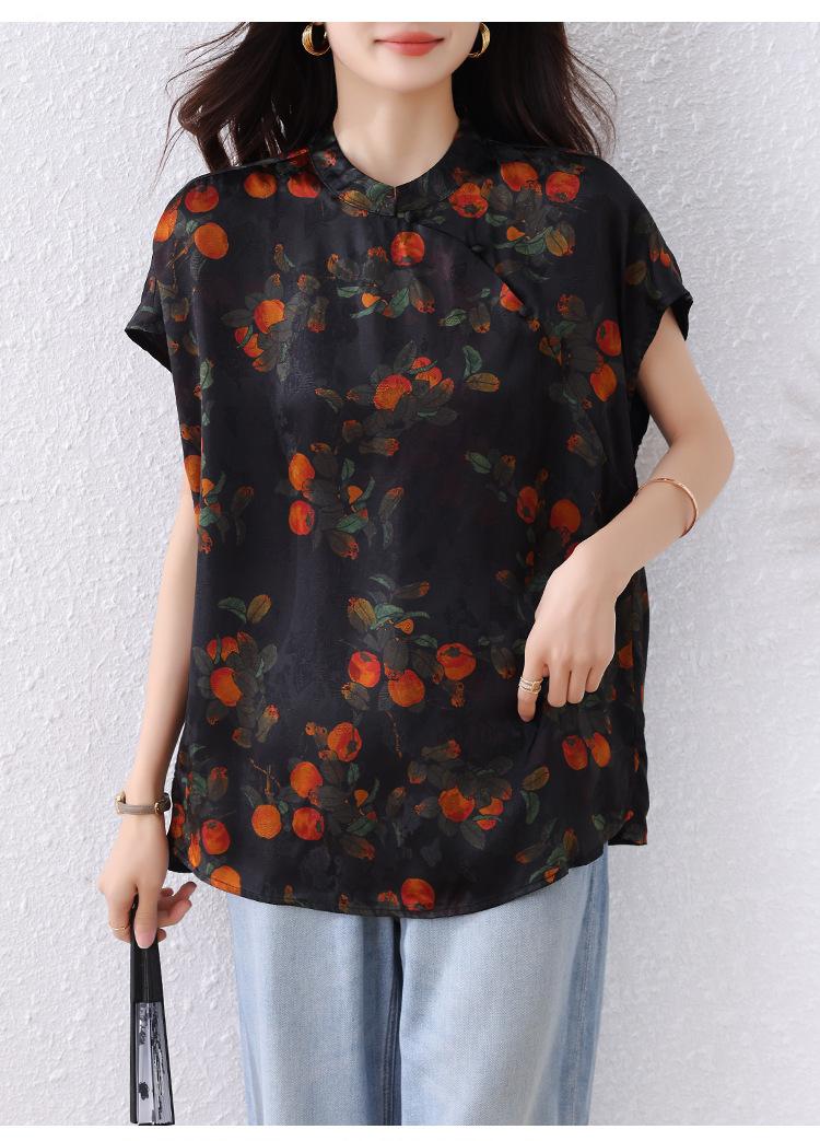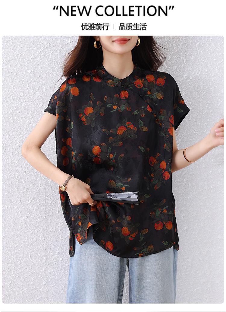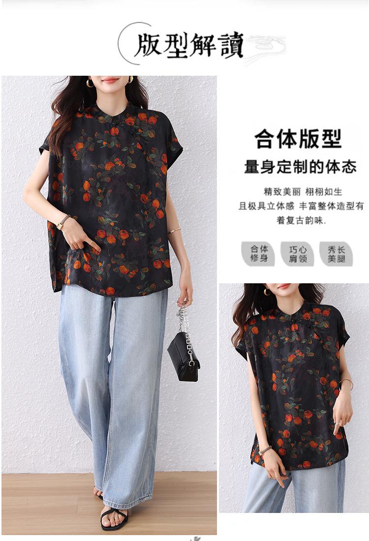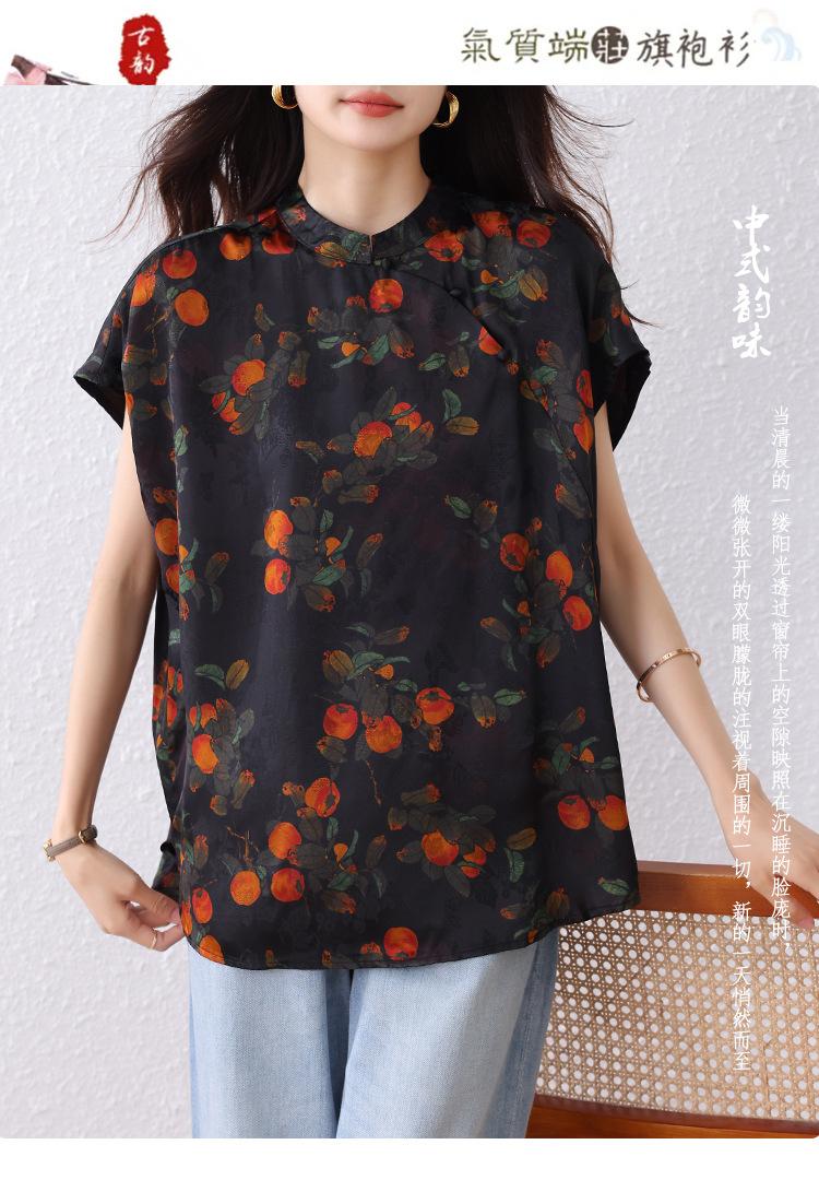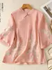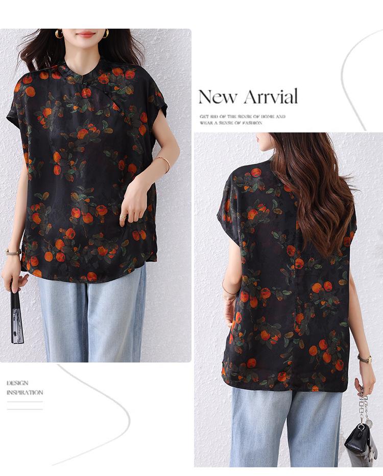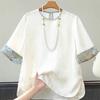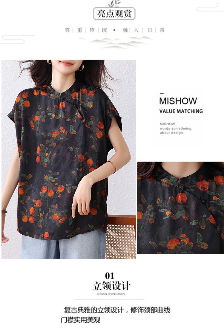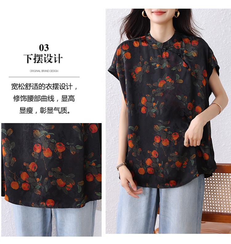 Camisa Mejorada de Estilo Chino Nuevo para Mujer de Talla Grande Adelgazante y Rejuvenecedora de Alta Calidad, Temperamento de Verano, Versátil Camisa de Seda con un Estilo Nacional