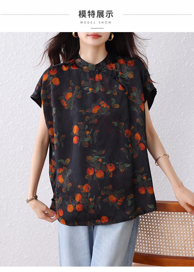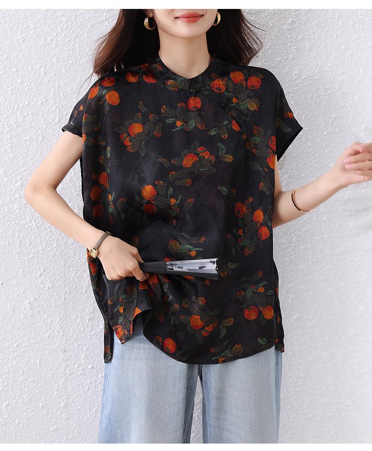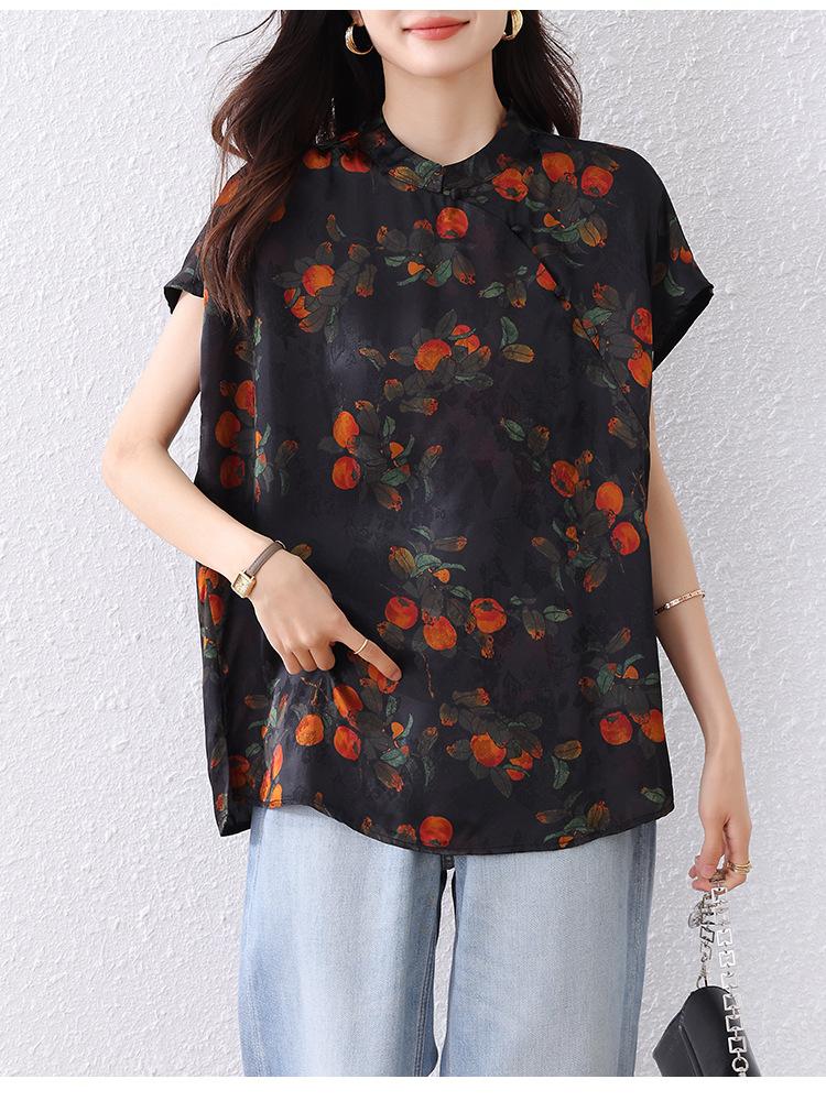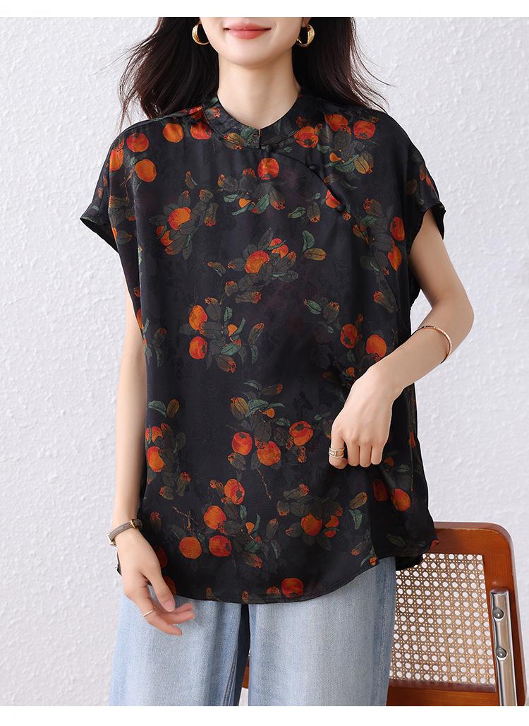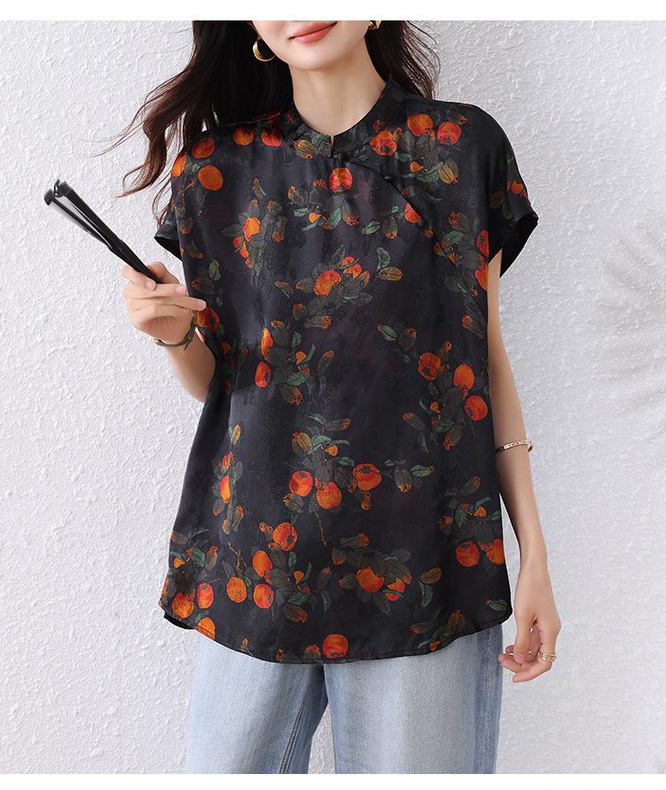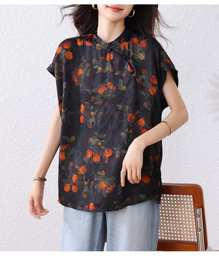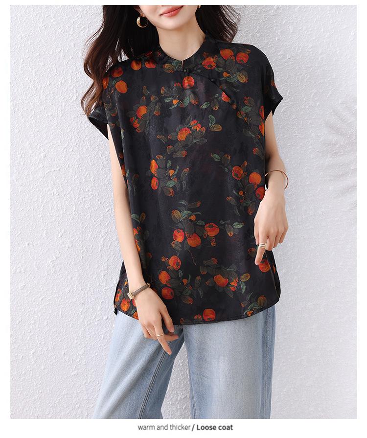 Camisa Mejorada de Estilo Chino Nuevo para Mujer de Talla Grande Adelgazante y Rejuvenecedora de Alta Calidad, Temperamento de Verano, Versátil Camisa de Seda con un Estilo Nacional