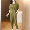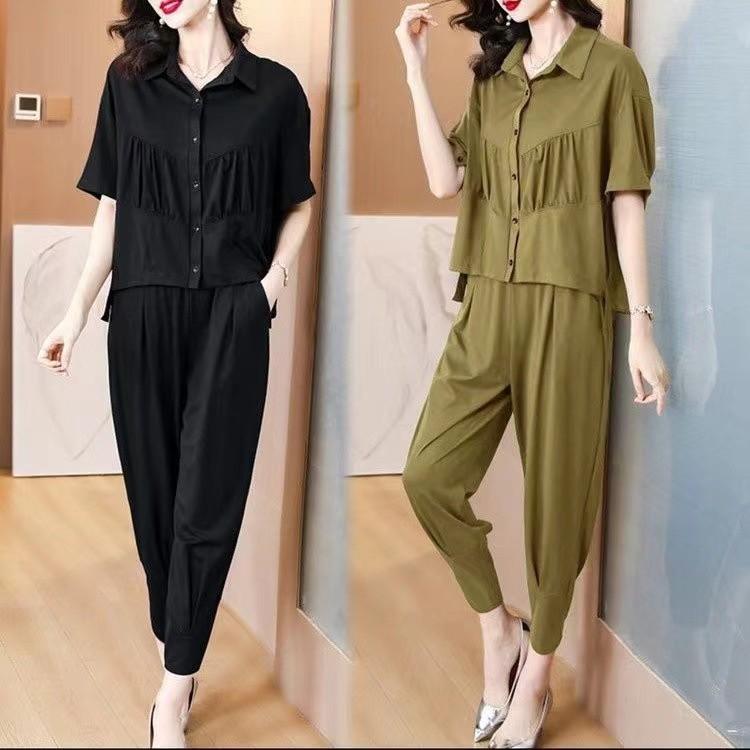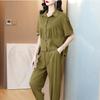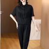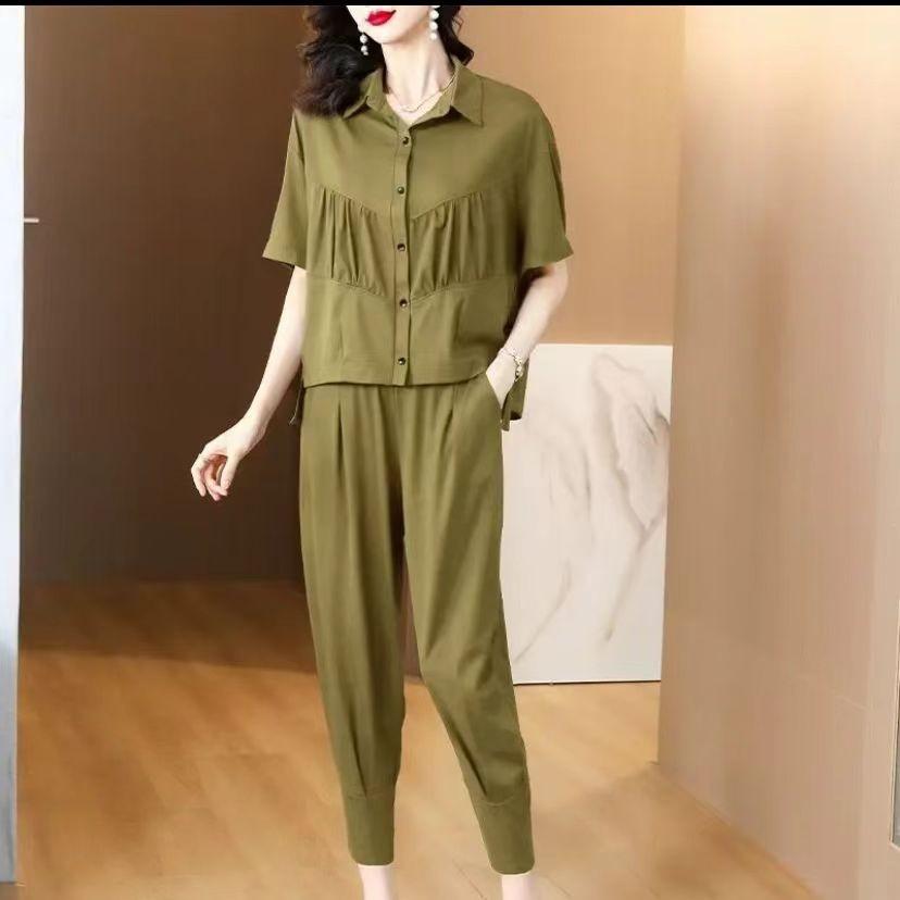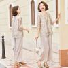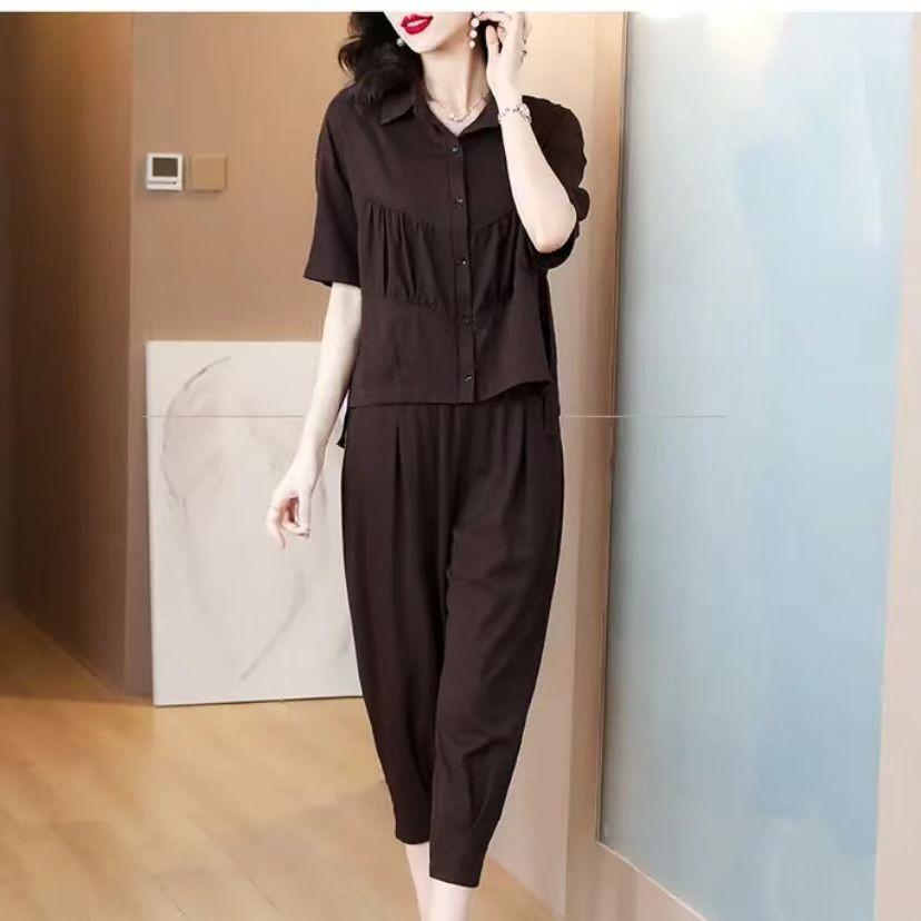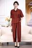 Traje de Camisa Cárdigan Casual de Verano para Madre Pantalones Rectos de Pierna Ancha para Mujer 2025 Nuevo Artístico Retro Suelto